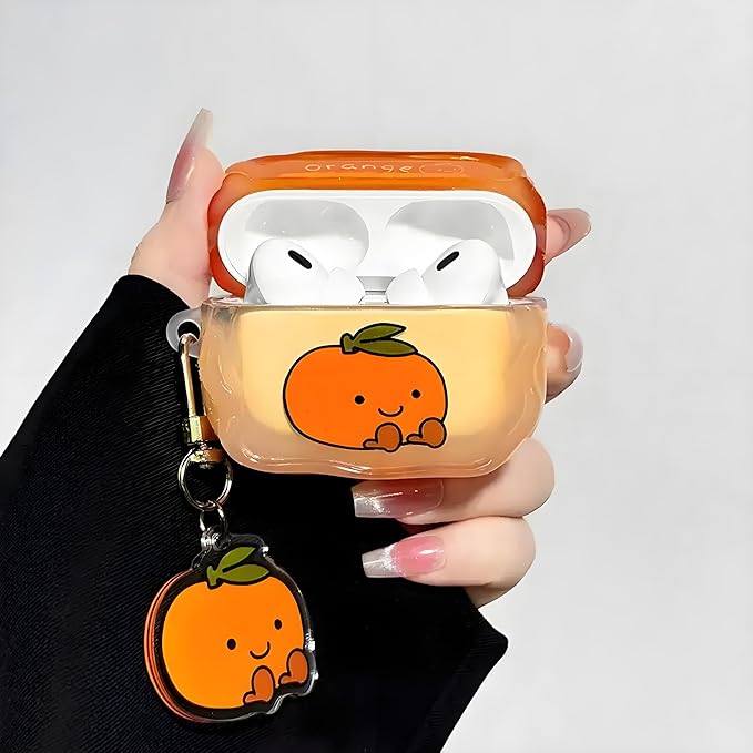 Compatible for AirPods Pro 2 Case, Fresh Summer Juicy Orange AirPods Pro 2 Generation Protective Case with Keychain for Girls Women, Shockproof Headset Cover for Airpods Pro 2, Citrus