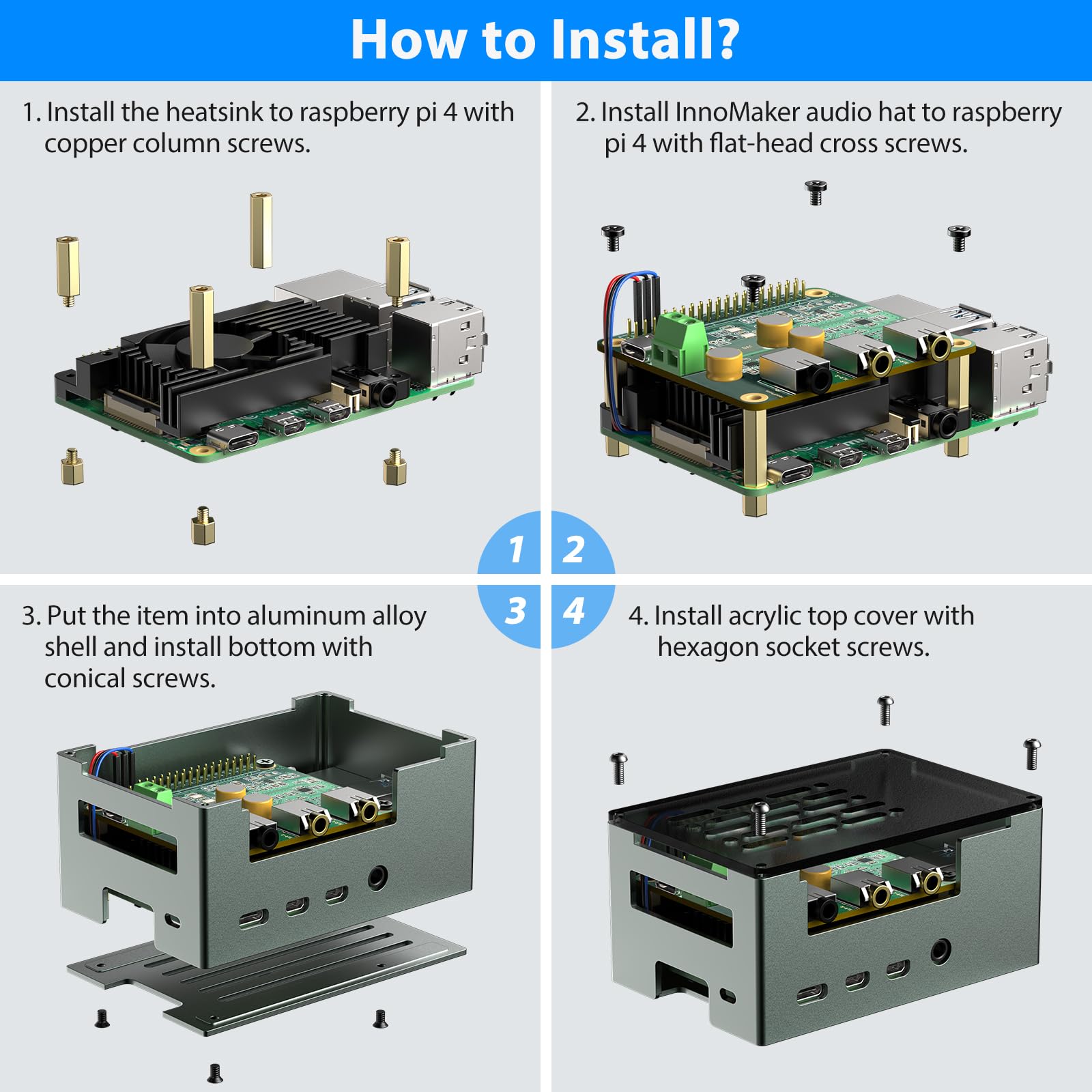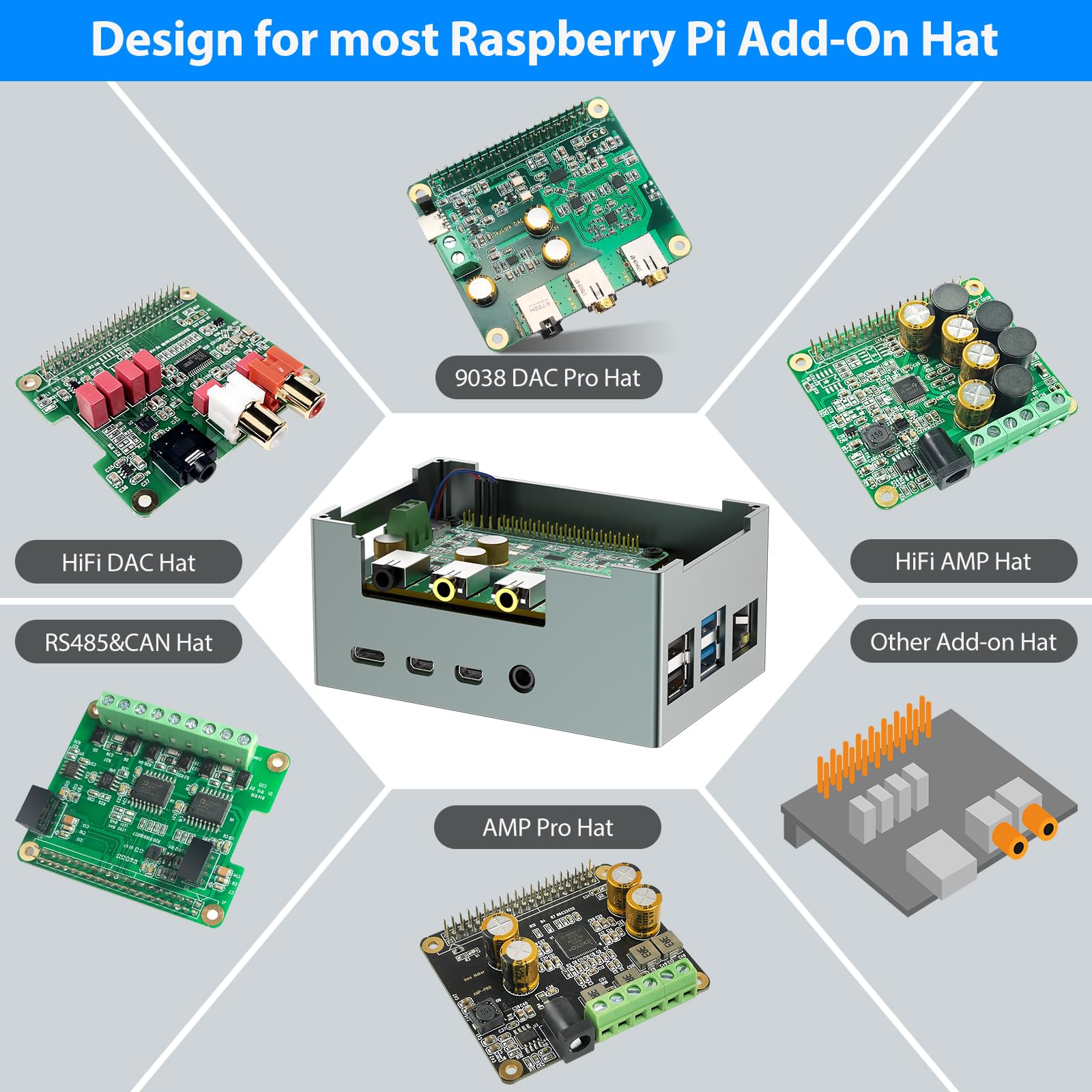 - Raspberry Pi 4 HAT Compatibility: expertly designed to fit InnoMaker’s DAC, DAC PRO, AMP, AMP PRO, and RS485&CAN HATs, with ample space for most other add-on boards and expansion cards.