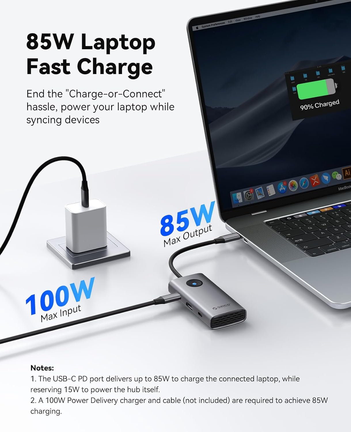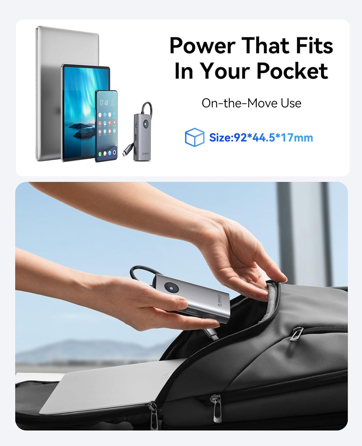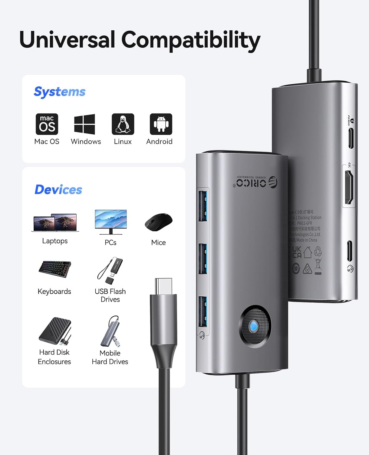 ORICO 6-in-1 USB C Docking Station with 4K HDMI, 3 USB-A 3.0 & 1 USB-C 3.0 Ports (5 Gbps), 100W PD Charging, Multiport Adapter for Windows, Mac