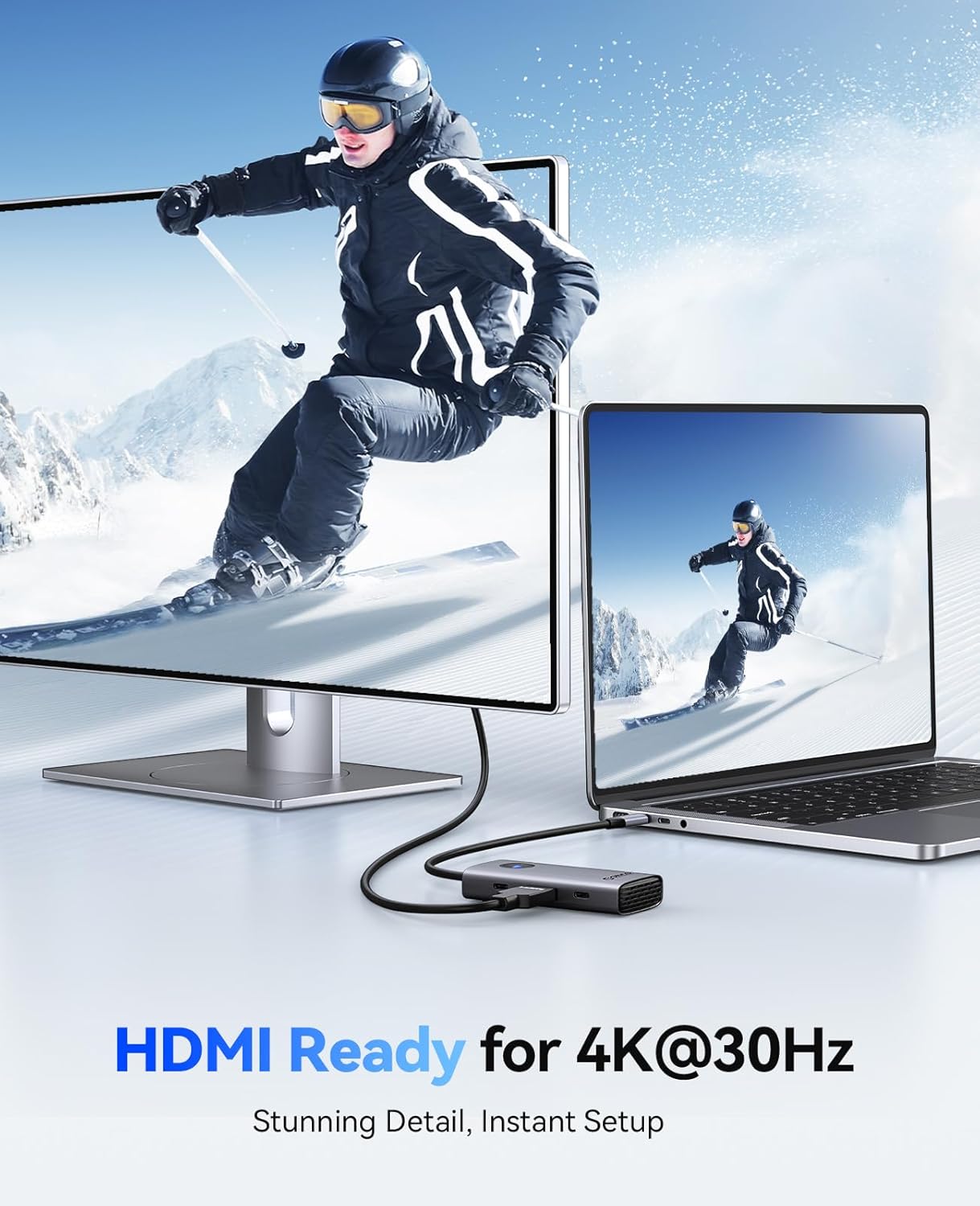 - 【4K@30Hz HDMI Output】The USB C Hub’s HDMI port streams 4K@30Hz (backwards compatible with 1080P@60Hz, 720P@60Hz) to TVs/monitors. Perfect for movies, presentations, or multitasking
