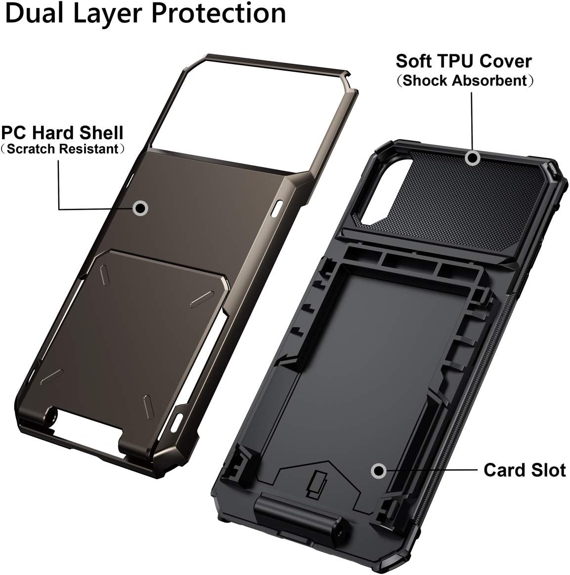 Dual layer protection: anti-scratch PC shell + shock absorbing TPU cover.