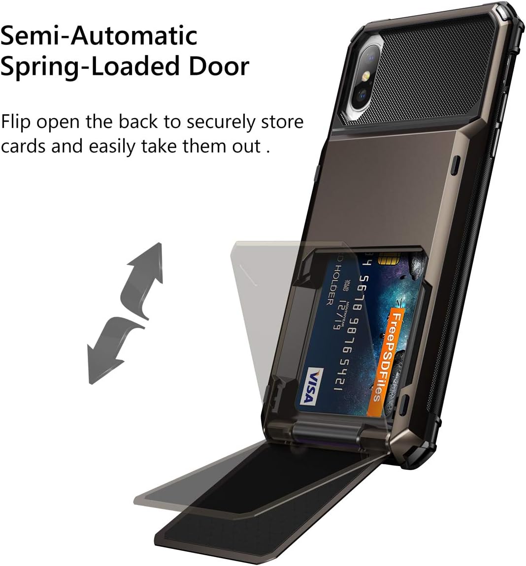 Semi-Automatic Spring-Loaded Door:Flip open the back to securely store cards and easily take them out .