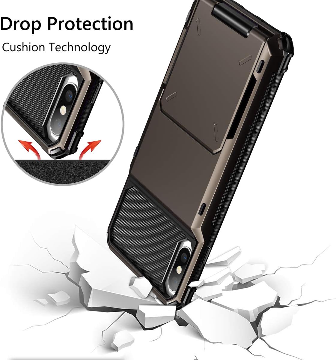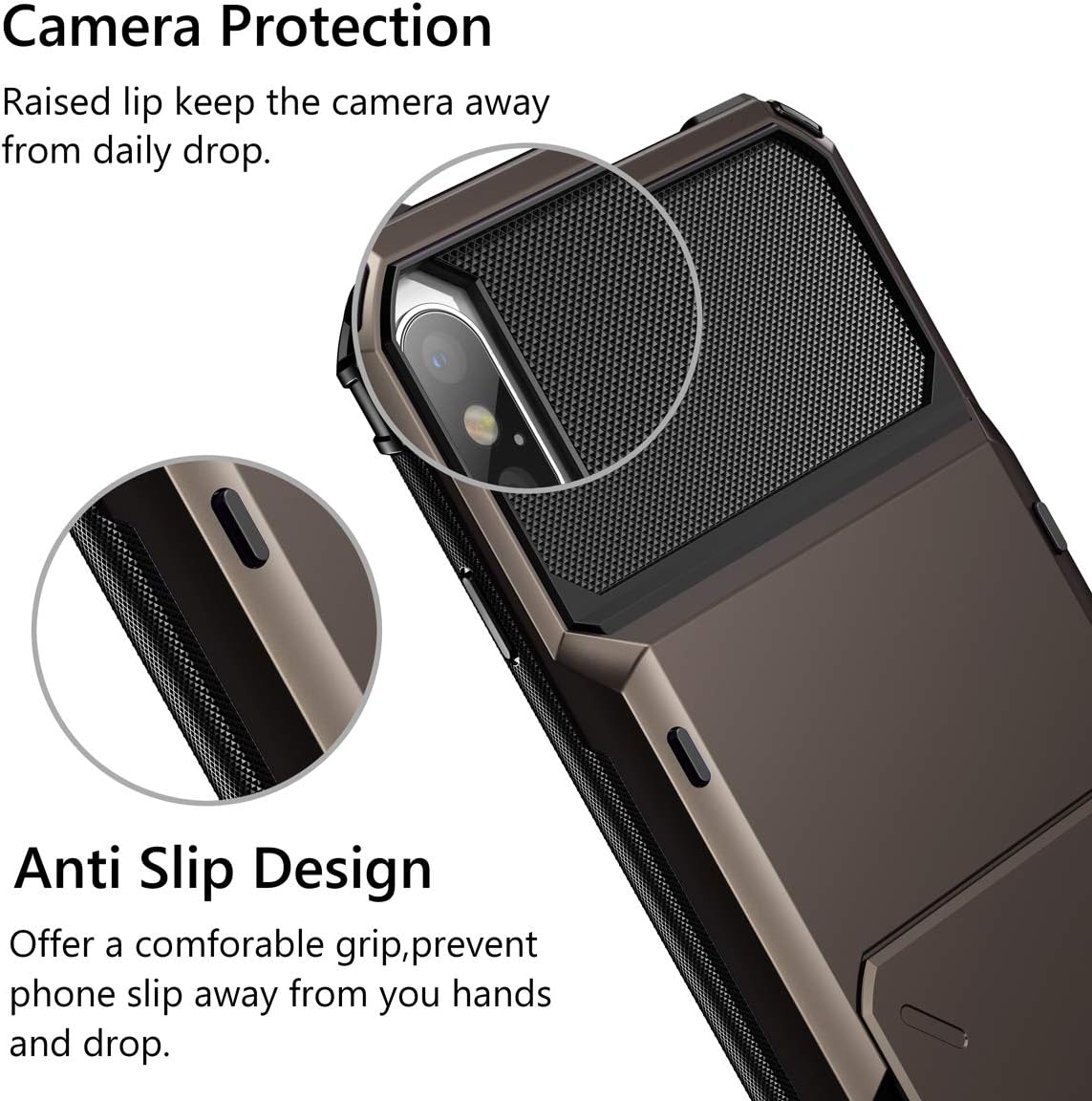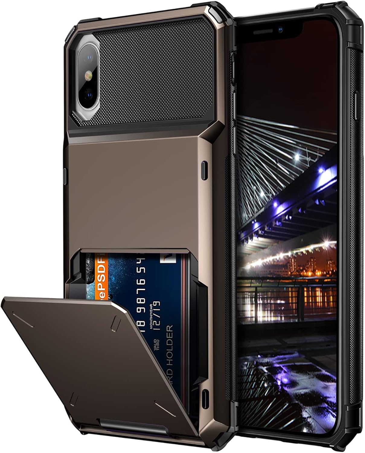 Vofolen – Slidable Hidden Slot Card Holder Wallet Case for iPhone XS Max (6.5″ Display)