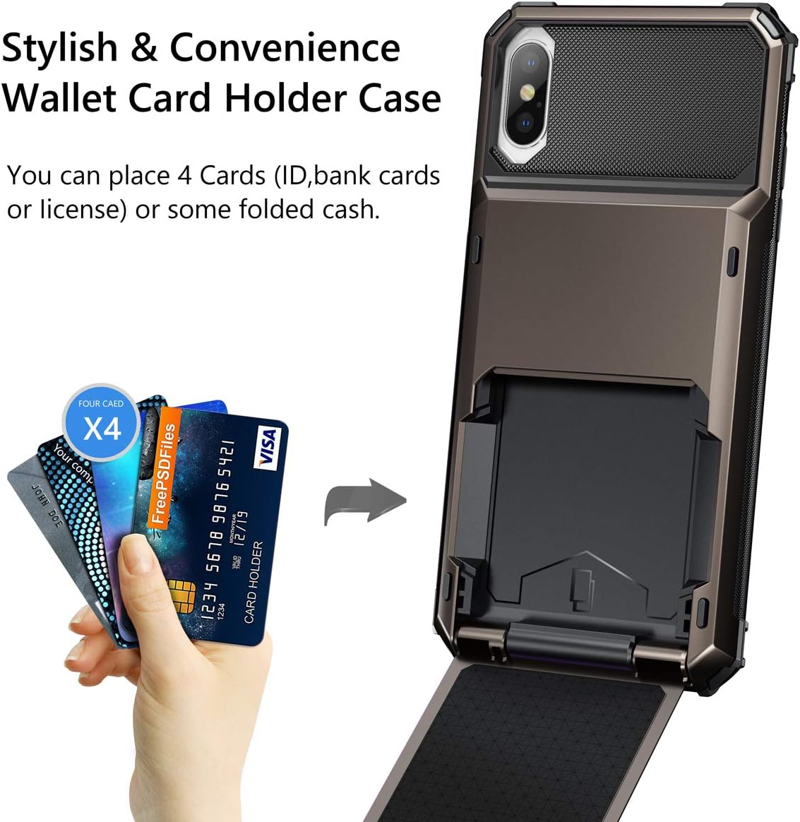 Hidden Card Holder:The case can hold up to 4 cards, you can carrying you ID, credit card of some case when going out.