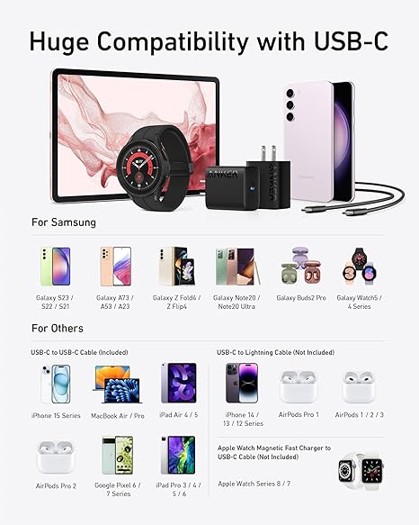 - Unmatched Compatibility: Equipped with PowerIQ 3.0 technology, this charger delivers optimized charging to a wide range of mobile devices and supports Programmable Power Supply (PPS), ensuring perfect compatibility with Samsung Super Fast Charging.