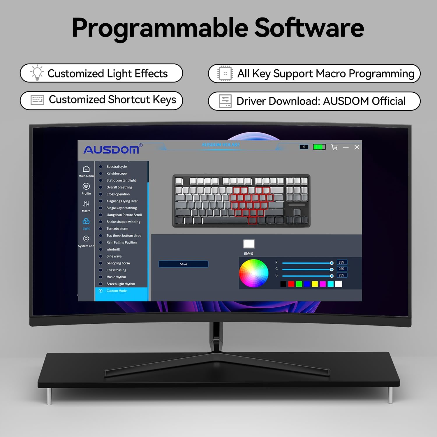 - Hot Swappable Custom Keyboard & Side Printed PBT Keycaps: The hot swappable mechanical keyboard can easily replace the custom switches without a screwdriver and customize the unique feel of the keyboard with just one pull and insert. In addition, the side printed keycaps adopt a two-color injection molding process, making the keycaps smooth and abrasion-resistant, and the characters clear and long-lasting. (One switch puller is included in the package)