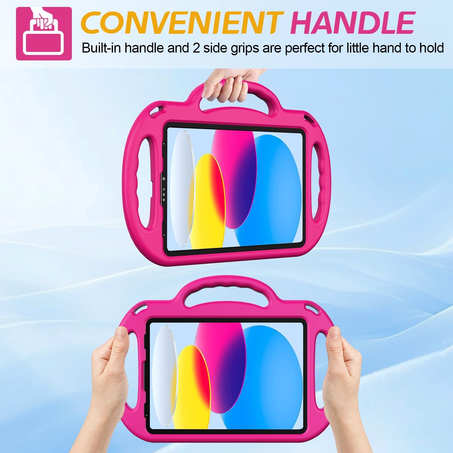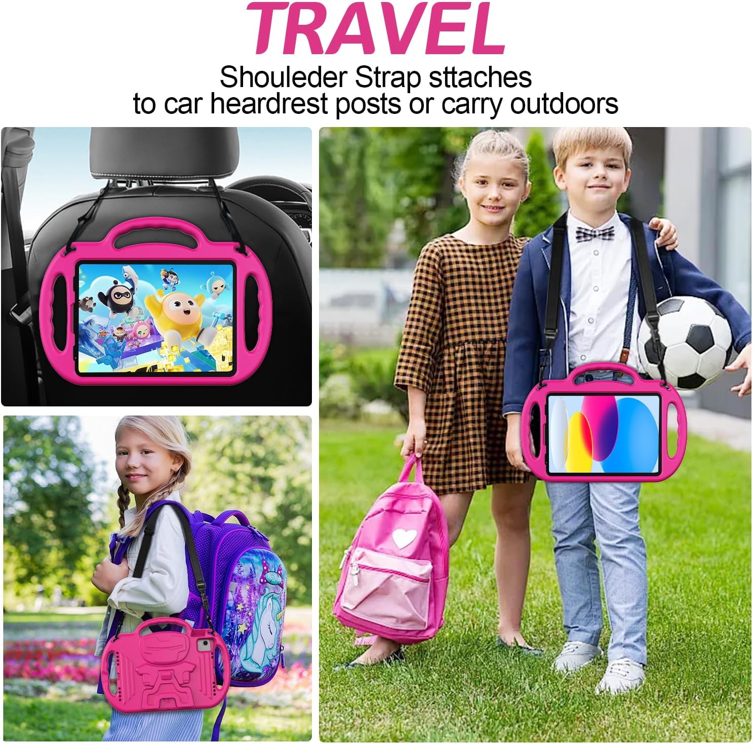 AVAWO Kids Case for iPad (A16) 11th Generation 11 Inch 2025 & iPad 10th Generation 10.9″ 2022, iPad Air (M3/M2) 2025/2024 Shockproof Rugged Protective with Shoulder Strap/Handles/Kickstand Cover, Rose