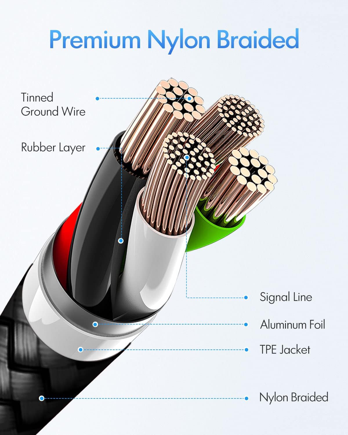 • Long-Lasting: Nylon braided adding tangle-free, can bear 20000+ bending lifespan