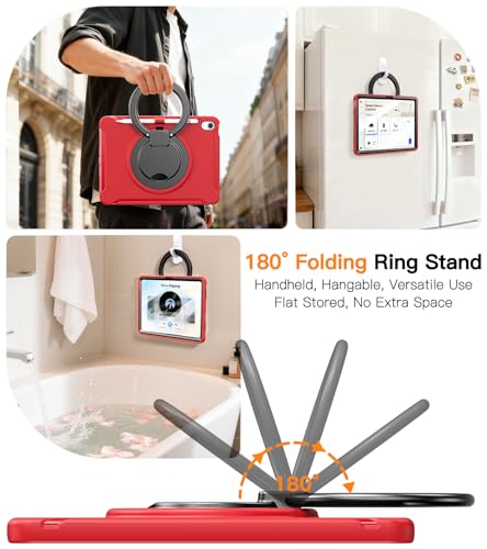- ✦ Ultra-Stable Ring Stand: Patented 360°rotation & 180°folding design outperforms strap-based stands.3-stage damping ensures zero wobble at any angle.Adjustable from 0°-180°for typing,drawing, or viewing, lying flat when stored.Unique hook attaches securely to walls, headboards, or desks—no magnets needed—reducing neck strain
