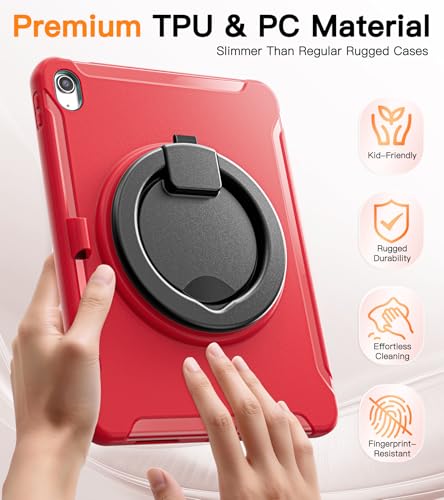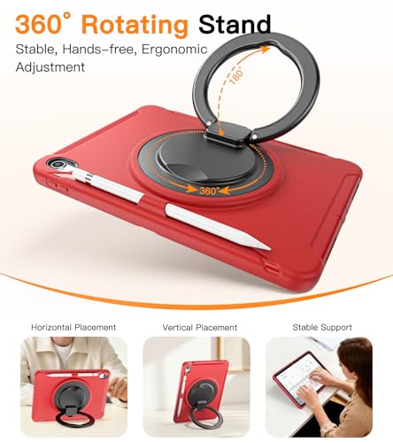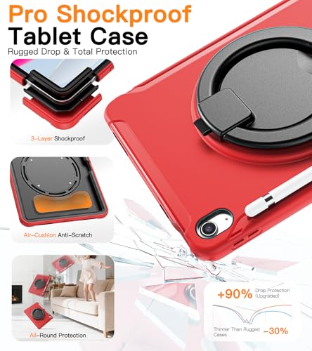 BATYUE Case for iPad 10th/11th (A16) Gen 2022/2025: Professional Shockproof 10.9/11″ Cover with Screen Protector, Pencil Holder, 360° Rotating Stand – Heavy-Duty, Red