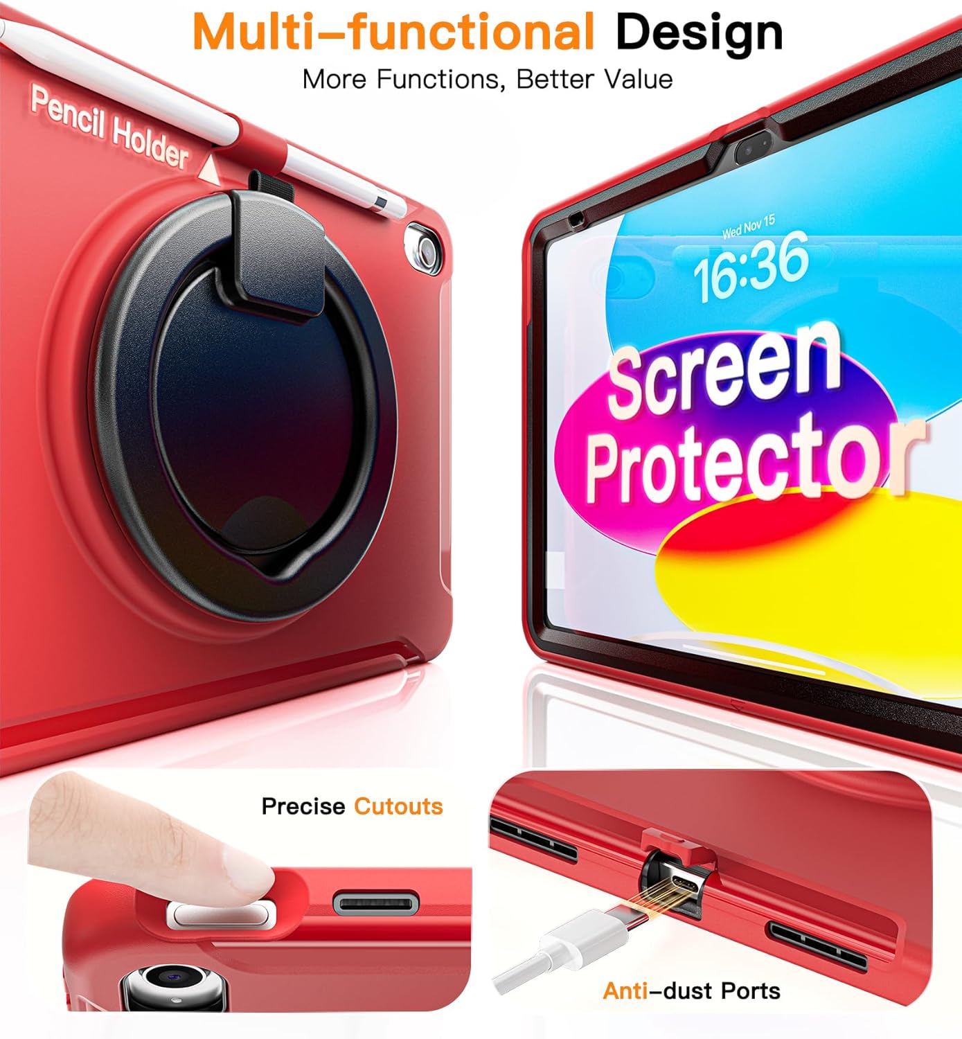 - ✦ Precision Protection with Thoughtful Design: Engineered with exact-cut openings for all ports and buttons. The responsive button covers deliver crisp tactile feedback.It construction absorbs shocks while providing a premium, comfortable grip. This case offers an integrated pen holder to store your precious Apple Pencil! Also comes with a bonus Pencil Cap Holder to secure your Apple Pencil cap! You’ll never worry about losing your pencil cap again. (Apple Pencil is not included)
