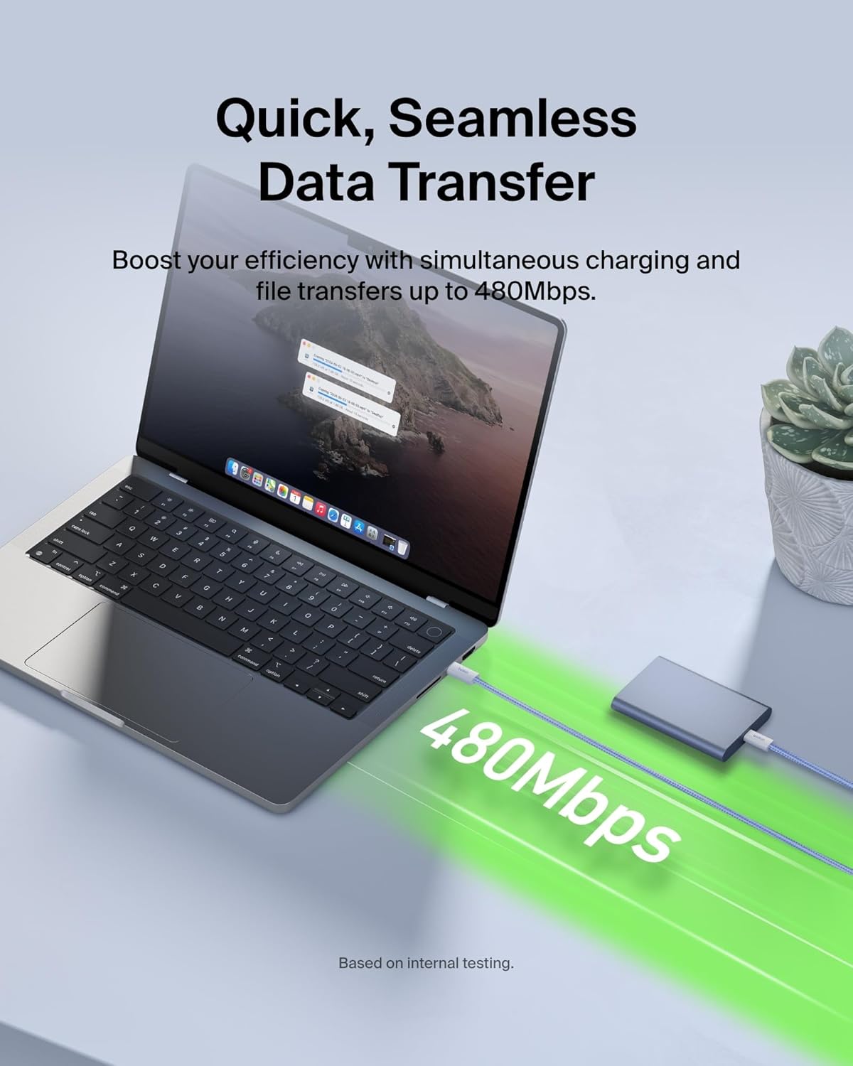 USB 2.0 standard – Up to 480 Mbps data transfer speed