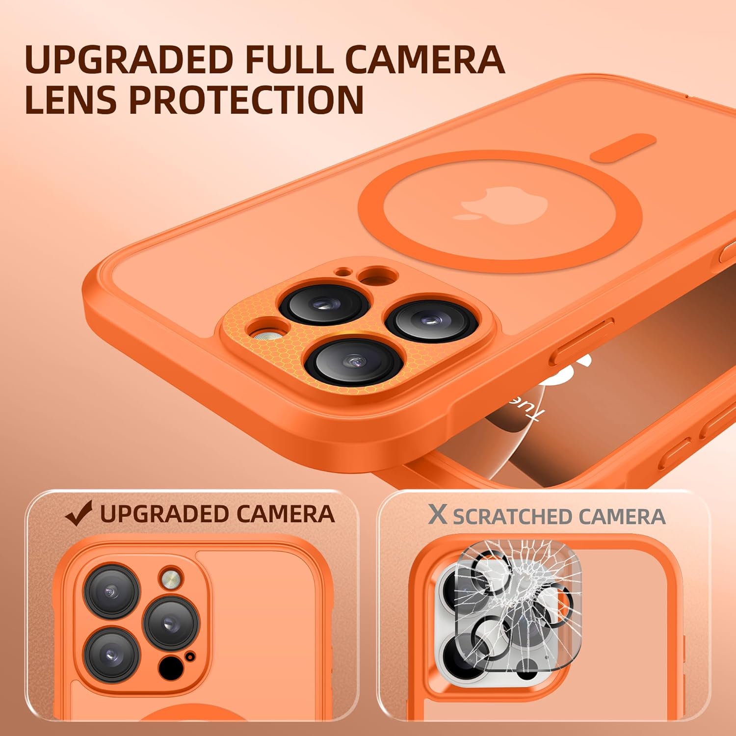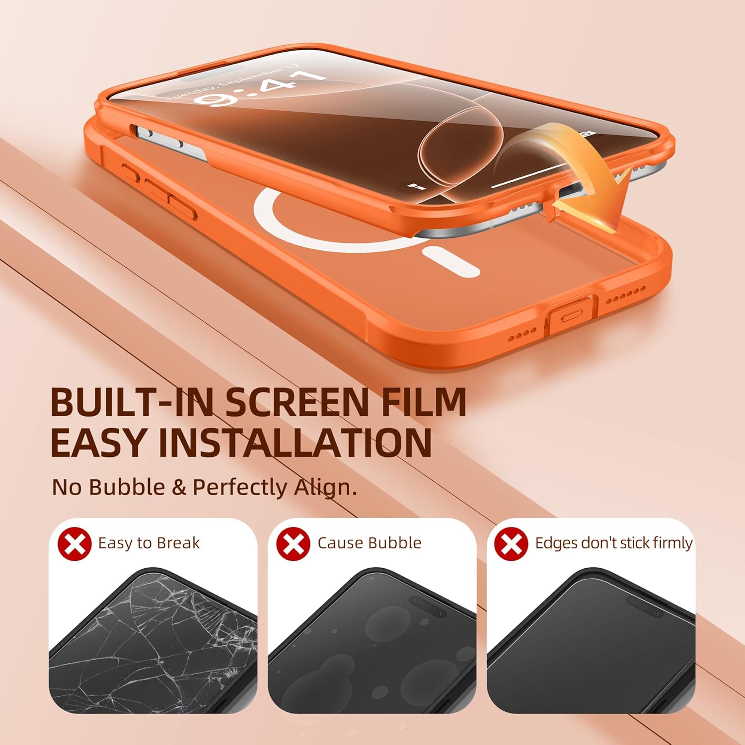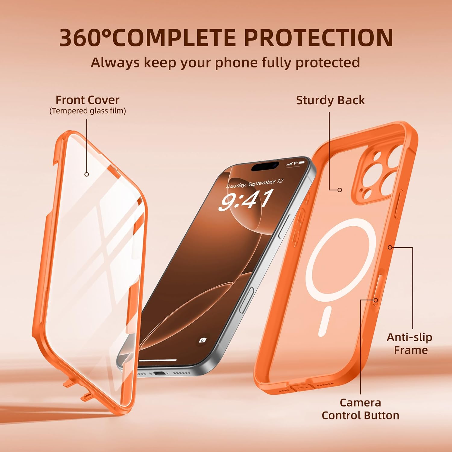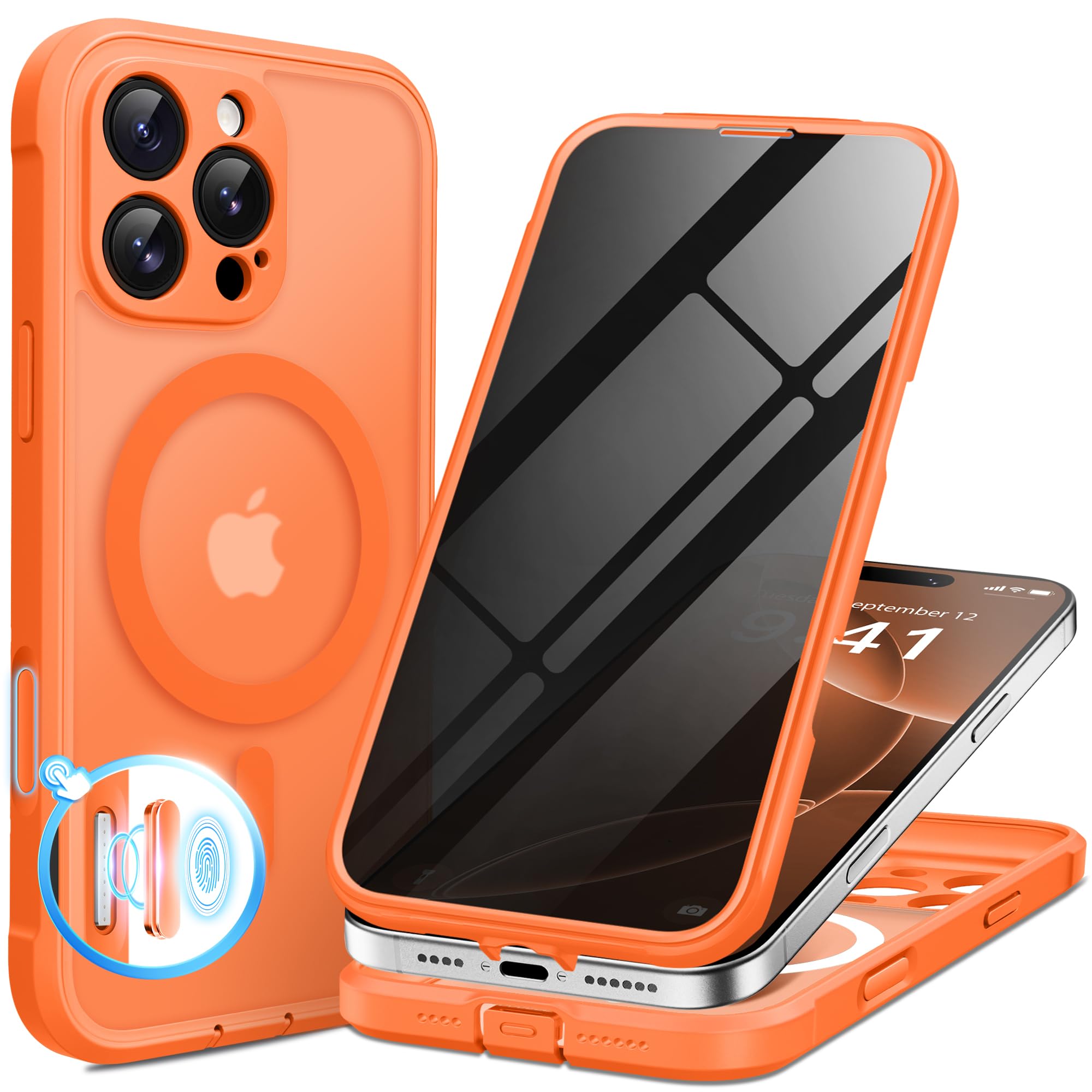 BERFY for iPhone 16 Pro Max Case, Compatible with MagSafe, Built-in 9H Tempered Glass Screen Protector and Camera Protection, Full Body Shockproof Matte Phone case for 16 Pro Max 6.9″,Orange