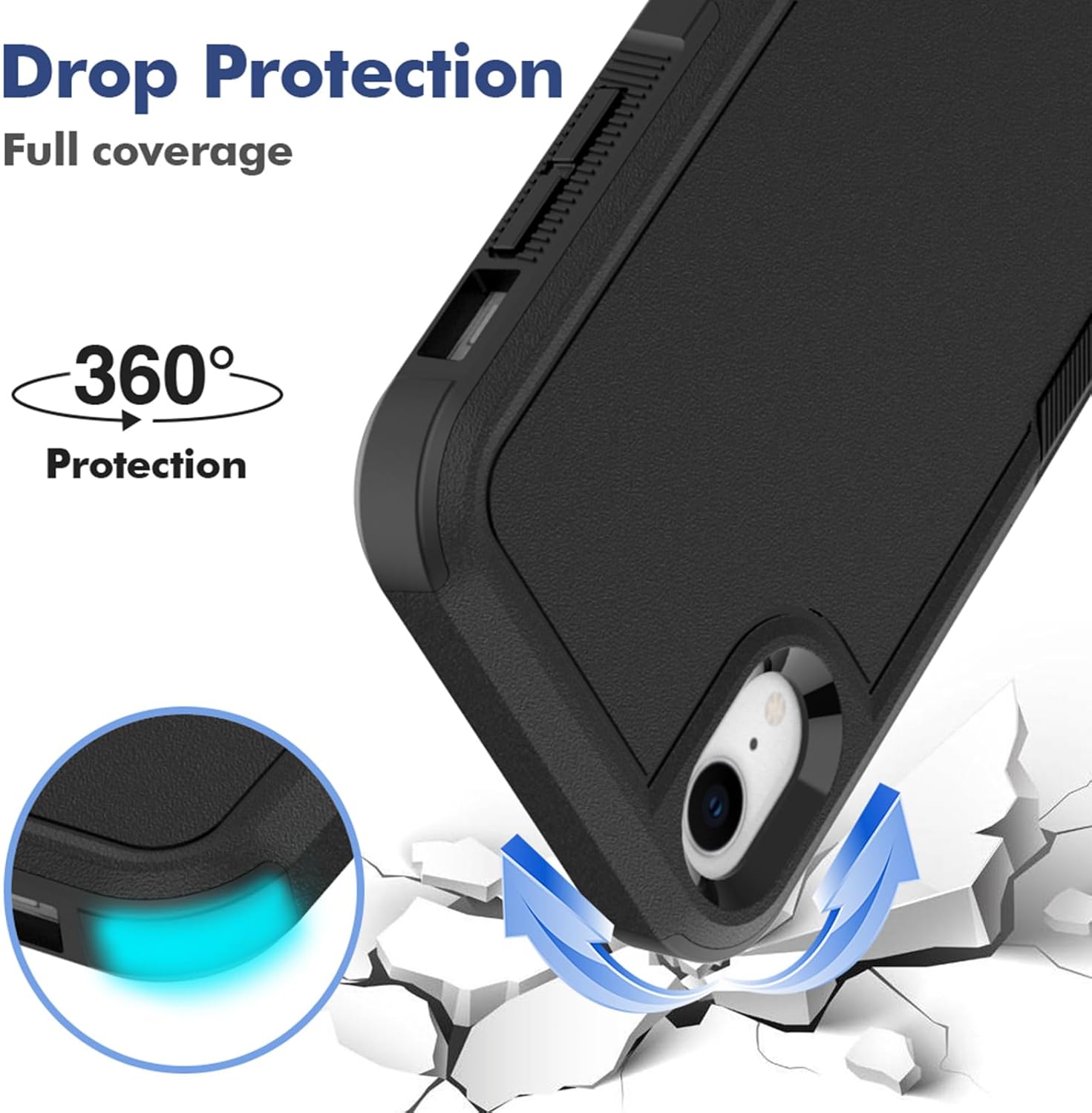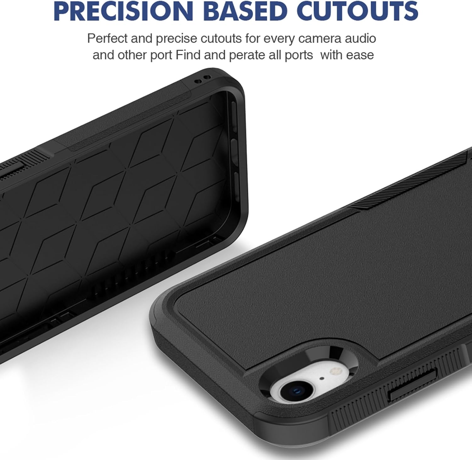 iPhone XR Case: Dual Layer Protective Heavy Duty Cell Phone Case Shockproof Rugged Bumper Tough with Screen Protector – 16ft Military Grade Drop Tested for Appple iPhone XR (6.1 inch), Black