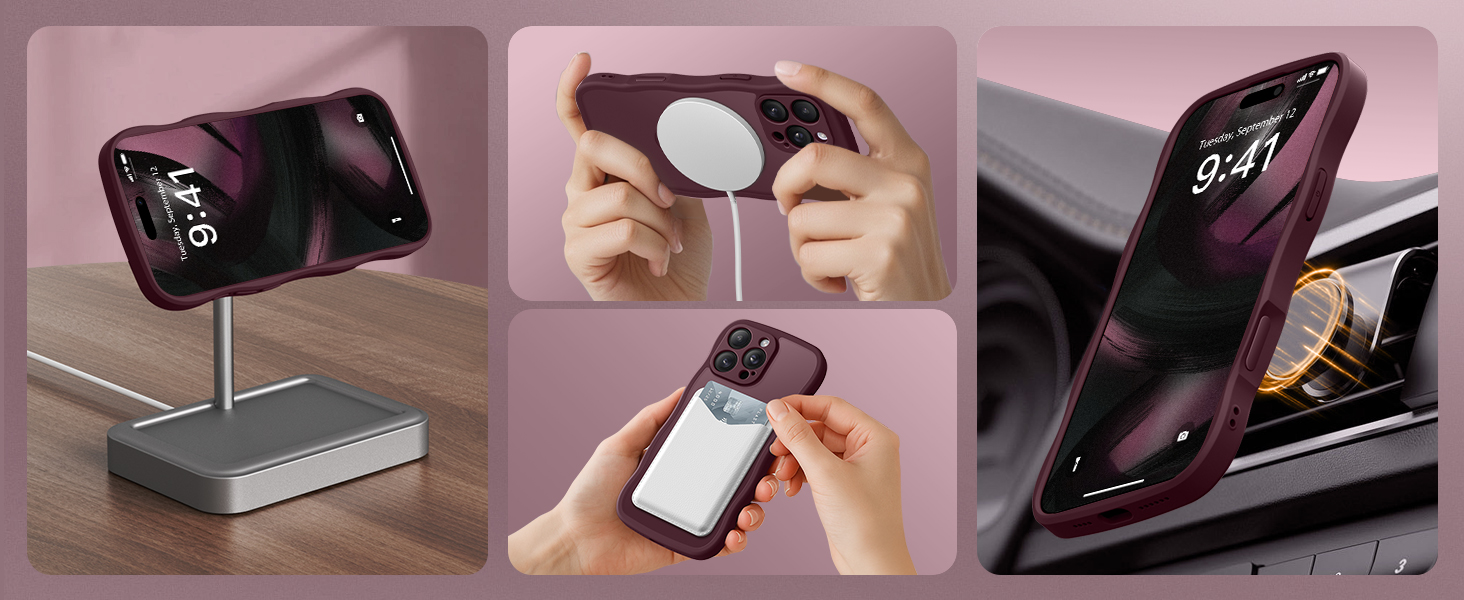 - [Compatible with Magsafe & QI Wireless Charger]Features powerful N52 magnets for a secure, shake-free grip with all magnetic accessories (wallets, car mounts, power banks, etc.). The invisible magnetic stand design ensures fast wireless charging with zero interference.