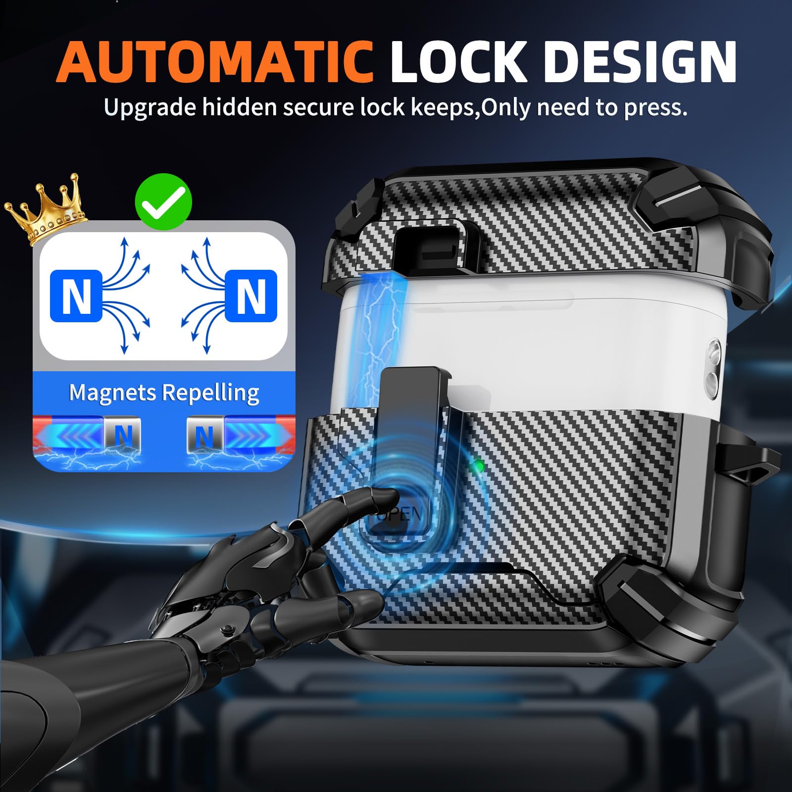 - 【Automatic Snap Switch Design】Upgrade hidden secure lock keeps,Only need to press the “OPEN” button, Automatic Snap Switch Secure Case ,easy to operate,More safe and practical design. You can open it with one hand,It can help you to prevent accidental opening when carrying or dropping.