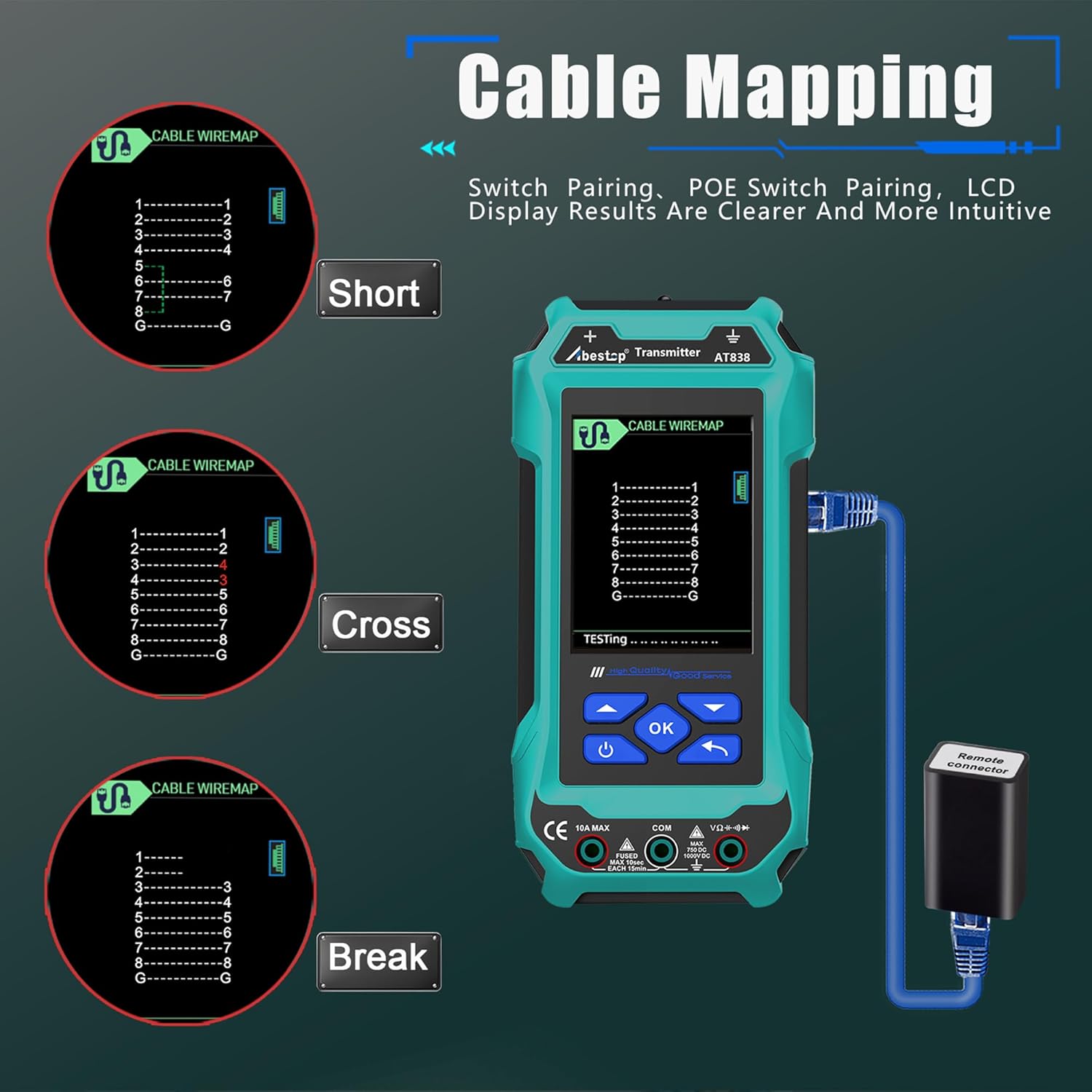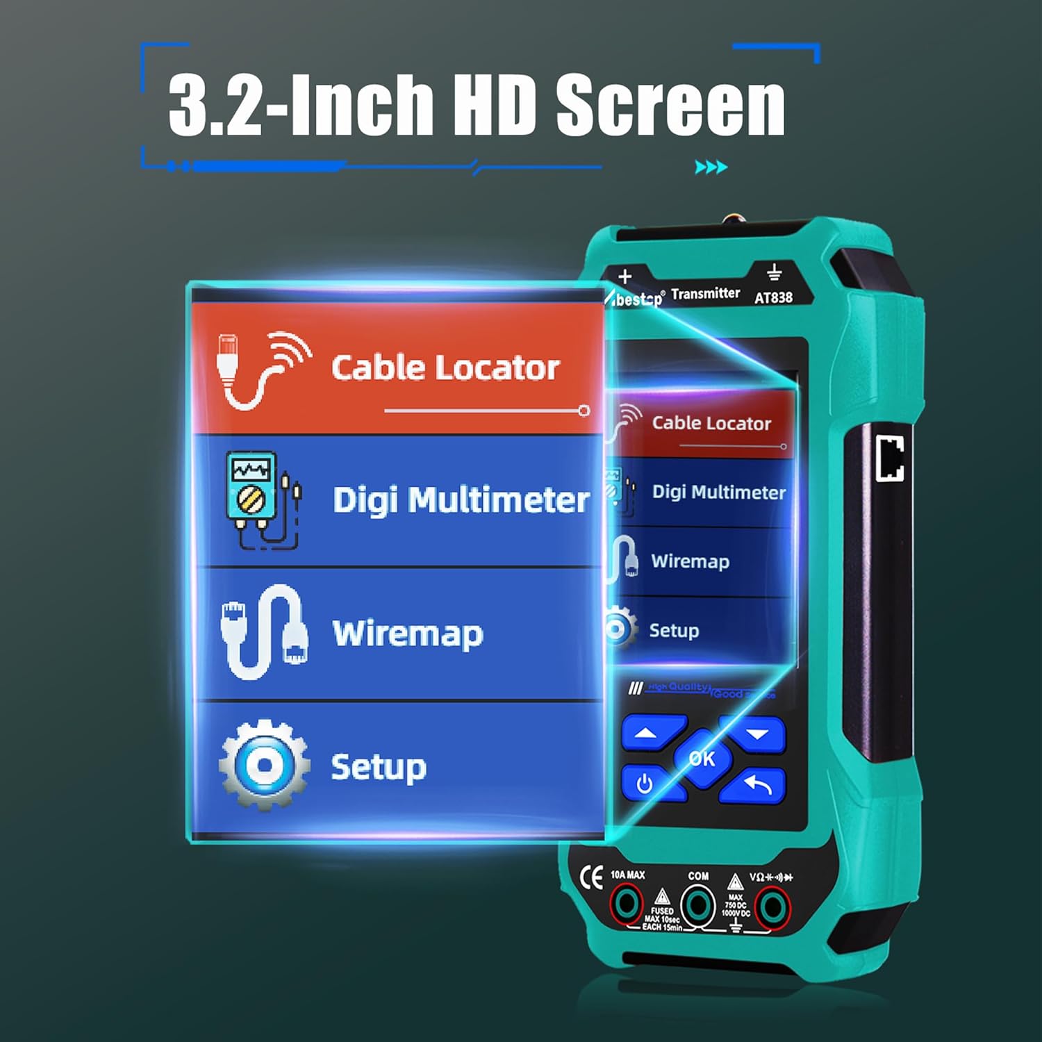 - Multimeter Function: 60,000 bit readings, support measure AC/DC voltage, AC/DC current, on/off beep, diode, resistance, capacitance and frequency; it will automatically detect DC current or AC current; it need to be strictly in accordance with the prompts connected to the insertion of the multimeter when you use the multimeter function, otherwise it may be burned out fuses and products(ONLY AT838)