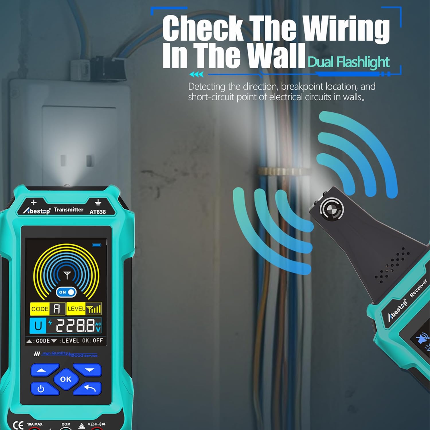 Underground Cable Locator, Abestop AT838 Cable Locator Tester Circuit Tracer with Multimeter Function 2 in 1 Functions Wires and Cables Circuit Tracer Detecting, Water and Gas Supply Pipelines