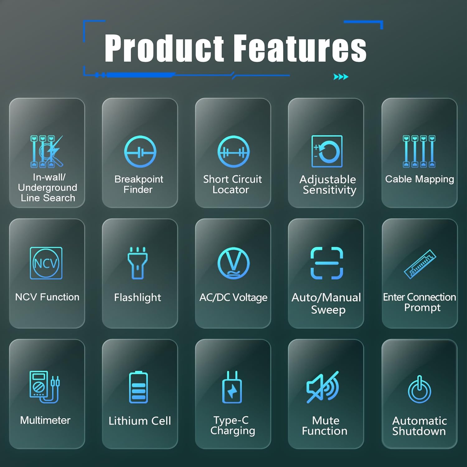 - Applications: detecting the laying path of cables, electrical lines, water and gas supply pipes in walls or underground; detecting breaks and short-circuit faults in cables and electrical lines buried in walls or underground; finding fuses and their insurance circuits; finding the direction, breaks, and short-circuits of electric heating lines under the floor