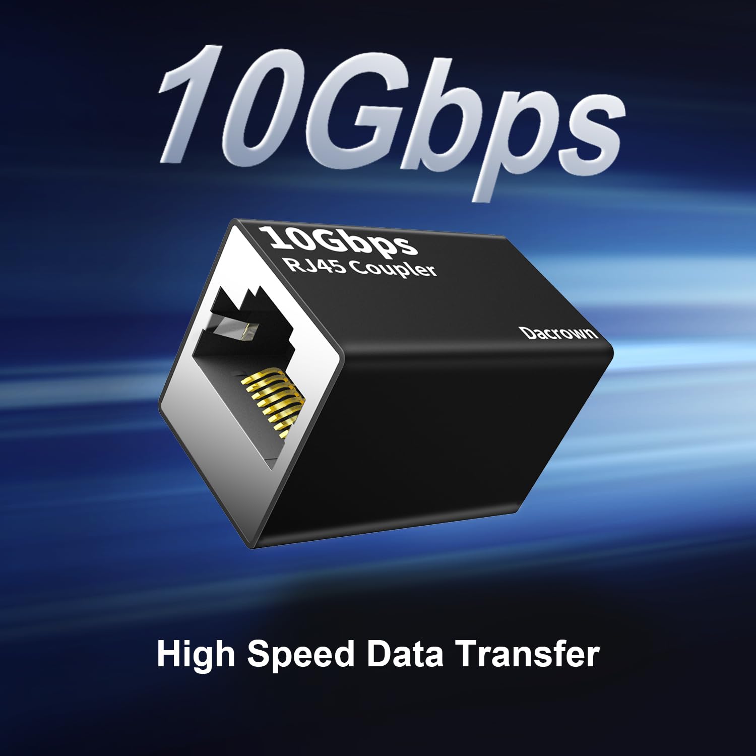 Dacrown RJ45 Ethernet Coupler 10Gbps, 3Pack Extender Adapter for Cat8 Cat7 Cat6 Cat5 Cat5e Ethernet Cable, 328ft Long Distance High Speed Connector, Female to Female Aluminum Alloy Black