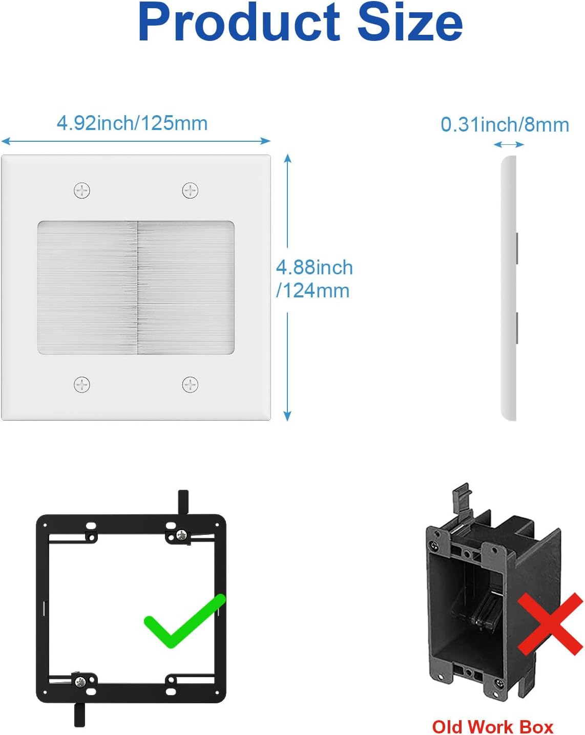 - Flush Mounting Style: The brush wall plate is 2-Piece type which fits the bracket and gang box well, The 2-Gang Cable Wall Plate are flushed mounted to the wall with screws