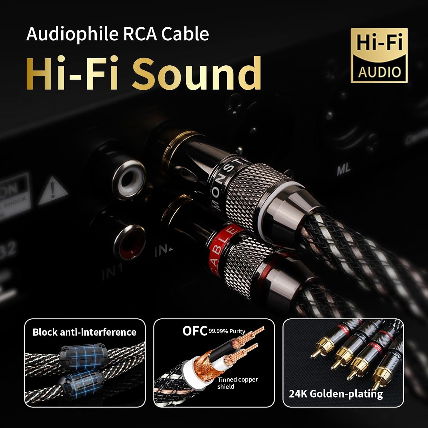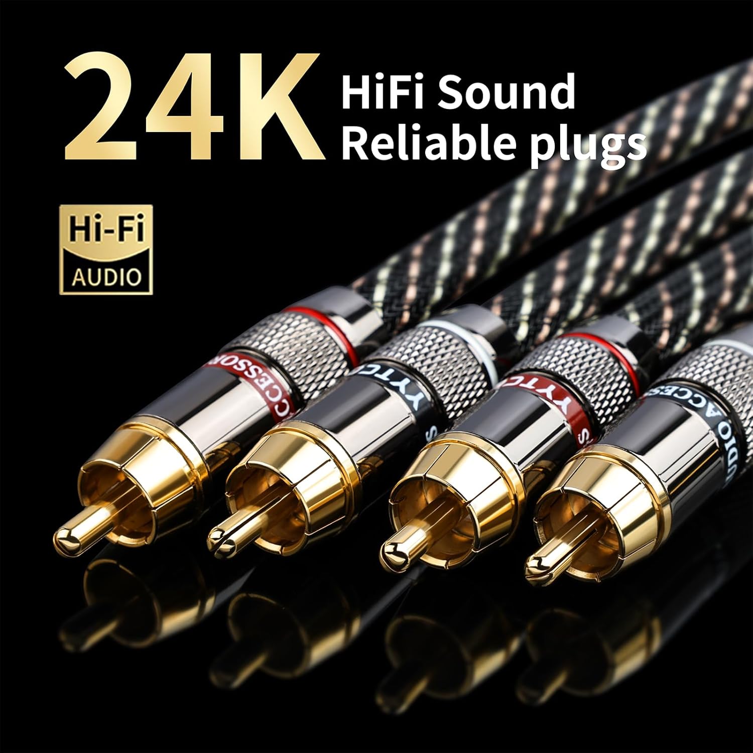 - 24K Gold-Plated Pure Copper Connectors: 5-micron thick plating (thicker than standard 2-3 microns) ensures longer-lasting corrosion resistance. The pure copper core guarantees smooth plugging/unplugging, making it a reliable RCA male to male or RCA patch cable. Enjoy crisp, stable audio with no signal drops—even after 1,000+ insertions.