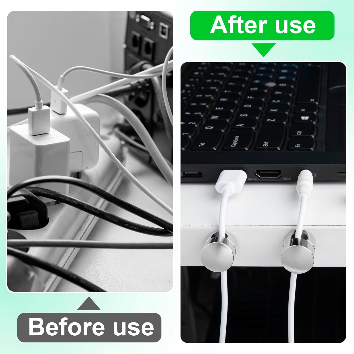 - Package Contains: 3 pcs silver cable anchors and 3pcs adhesive glue stickers, which can help you solve the problem of tangled cables and chargers that just won’t stay put.