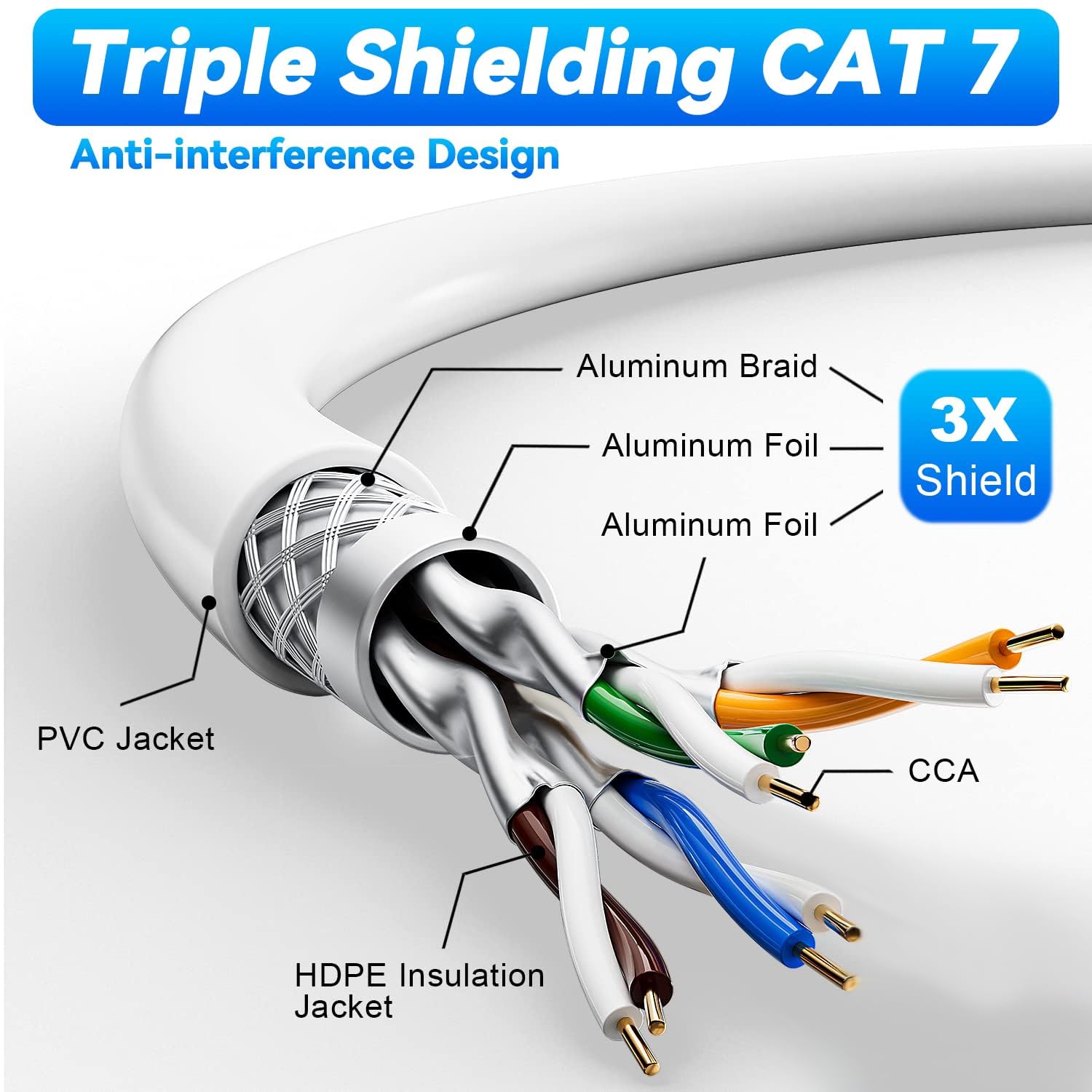 Cat 7 Ethernet cable has a bandwidth of 600MHz and a data transmission speed of 10Gbps, 10 times faster than cat 6 ethernet cable, which is able to meet the high-speed network requirements for server operation, live video and smart home, without any network delay, enjoy high-speed network life.