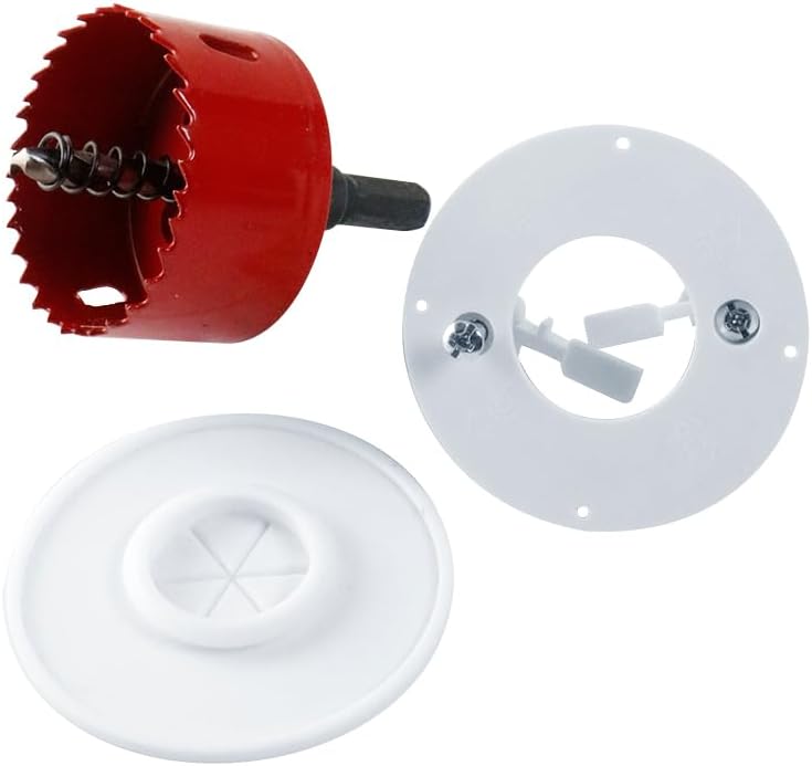 Construct Pro Speedy’Z Screw-in Cable Pass Through Port – White, 1.125″ Inner Diameter, 2.5″ Outer Diameter, Includes 2-1/8″ Hole Saw – Low Profile, Paintable Wall Plate with Rubber Grommet