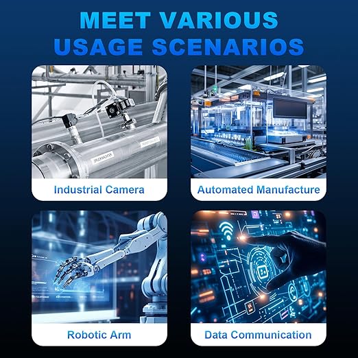- Versatile for Industrial Applications; This M12 to RJ45 cable is suitable for a wide range of industrial Ethernet applications; It works seamlessly with industrial cameras, automation equipment, sensors, industrial robots, and more; It’s also perfect for electronic processing, machine building, logistics, packaging, and other industrial automation systems