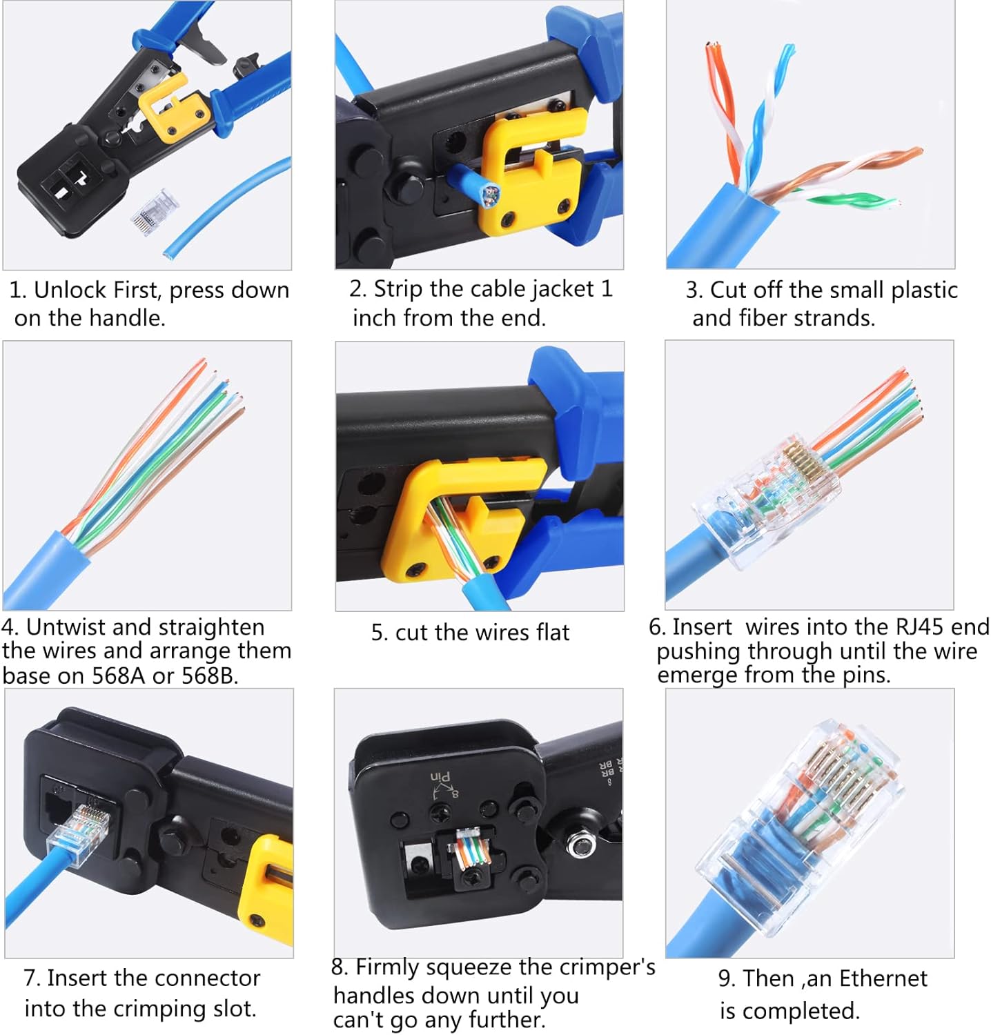- ✅Comes with Replacement Blades-The rj45 pass through crimp tool features a replaceable blade. Thus, you can replace the blade with a new one in case it becomes blunt over time. Besides, the blade is protected with a blade guard for enhanced safety and maintaining its sharpness for a long time.