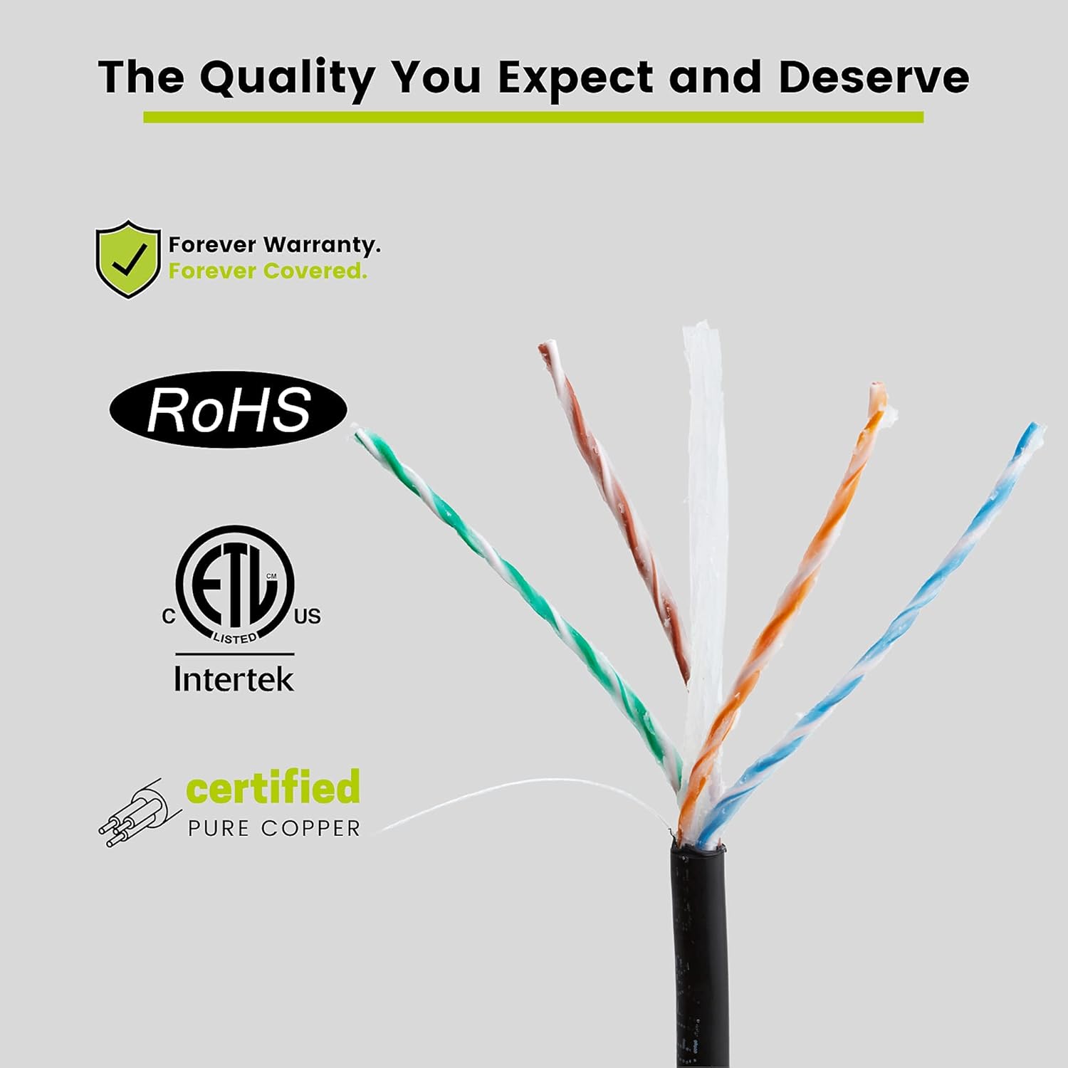 - [✓ Certified by trueCABLE] Our data cables have been tested with a DSX-8000 Versiv CableAnalyzer and are in compliance with ANSI/TIA 568.2-D standards, RoHS-3 compliant, and cETLus certified. Backed by our FOREVER WARRANTY. Compatibility & performance tested with trueCABLE RJ45 Connectors – B07Y3DDLGW and B088KWF9CW.