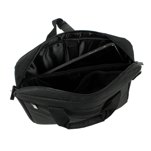 The Inland Laptop Briefcase offers a professional black design, securely fitting laptops up to 14.1”, with organized compartments for essentials.