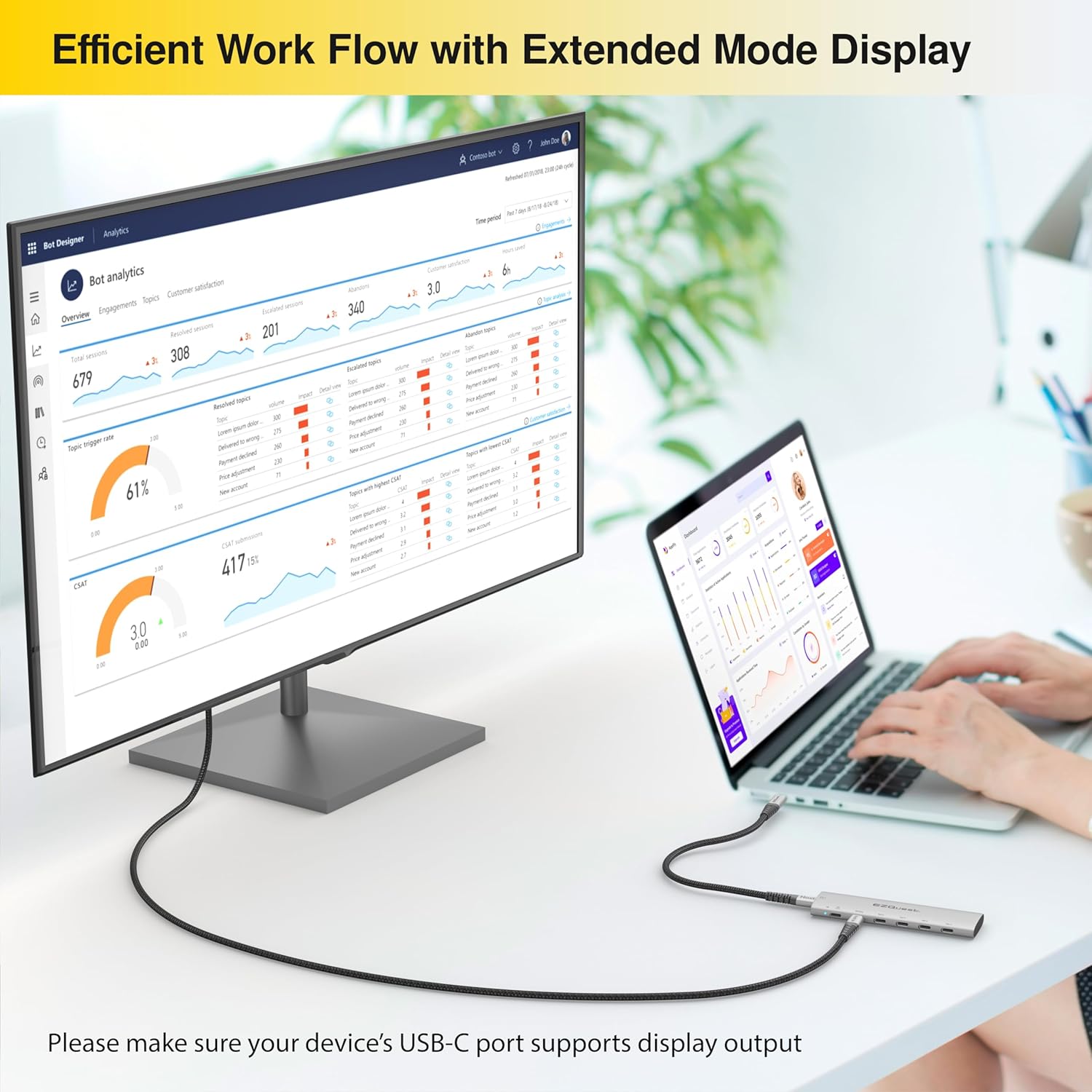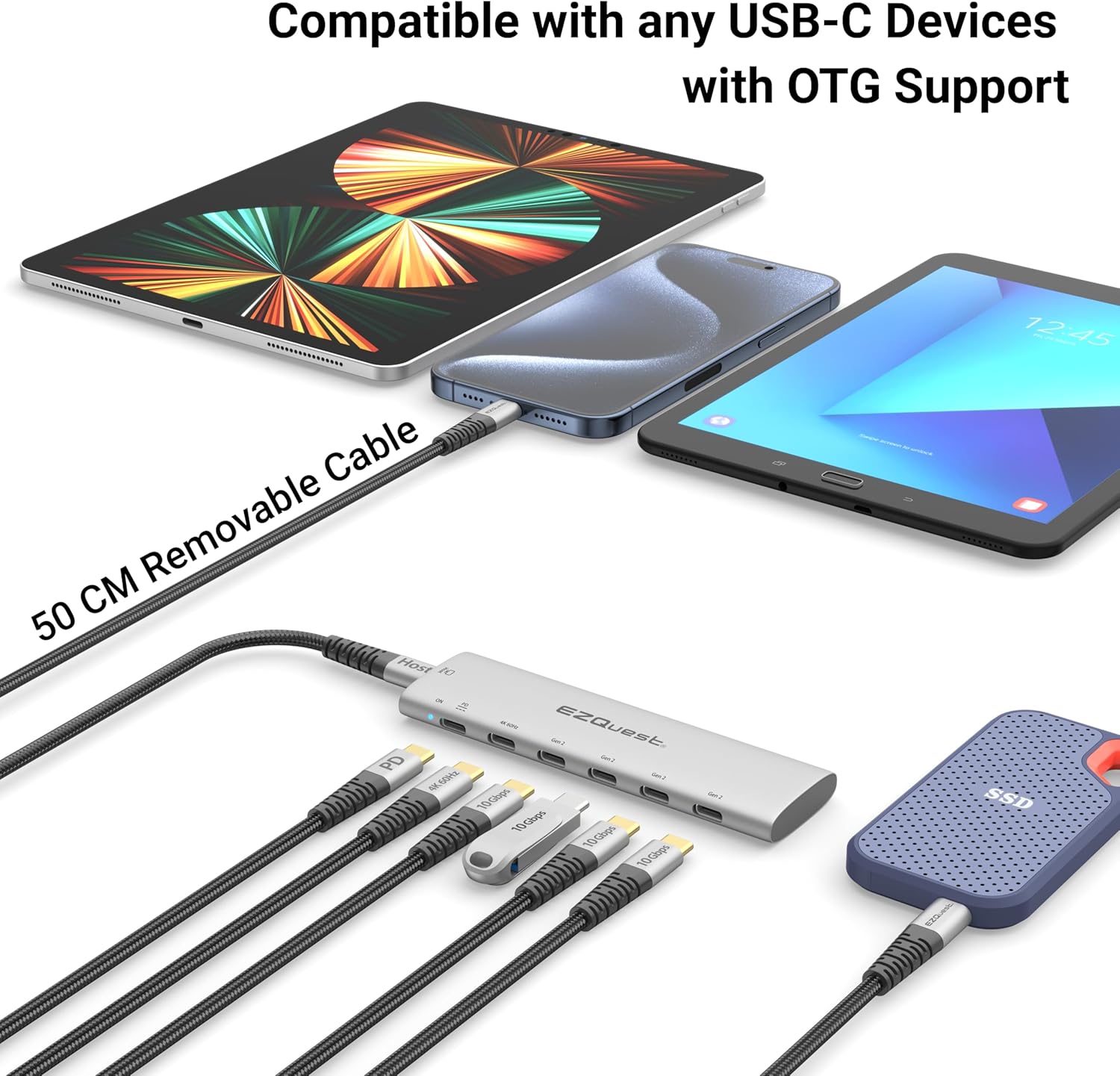 - Removable 19.6 inches (50 cm) nylon braided cable allows hub to lay flat on desk when connected to any Tablet or PC, iPad Pro or iMac