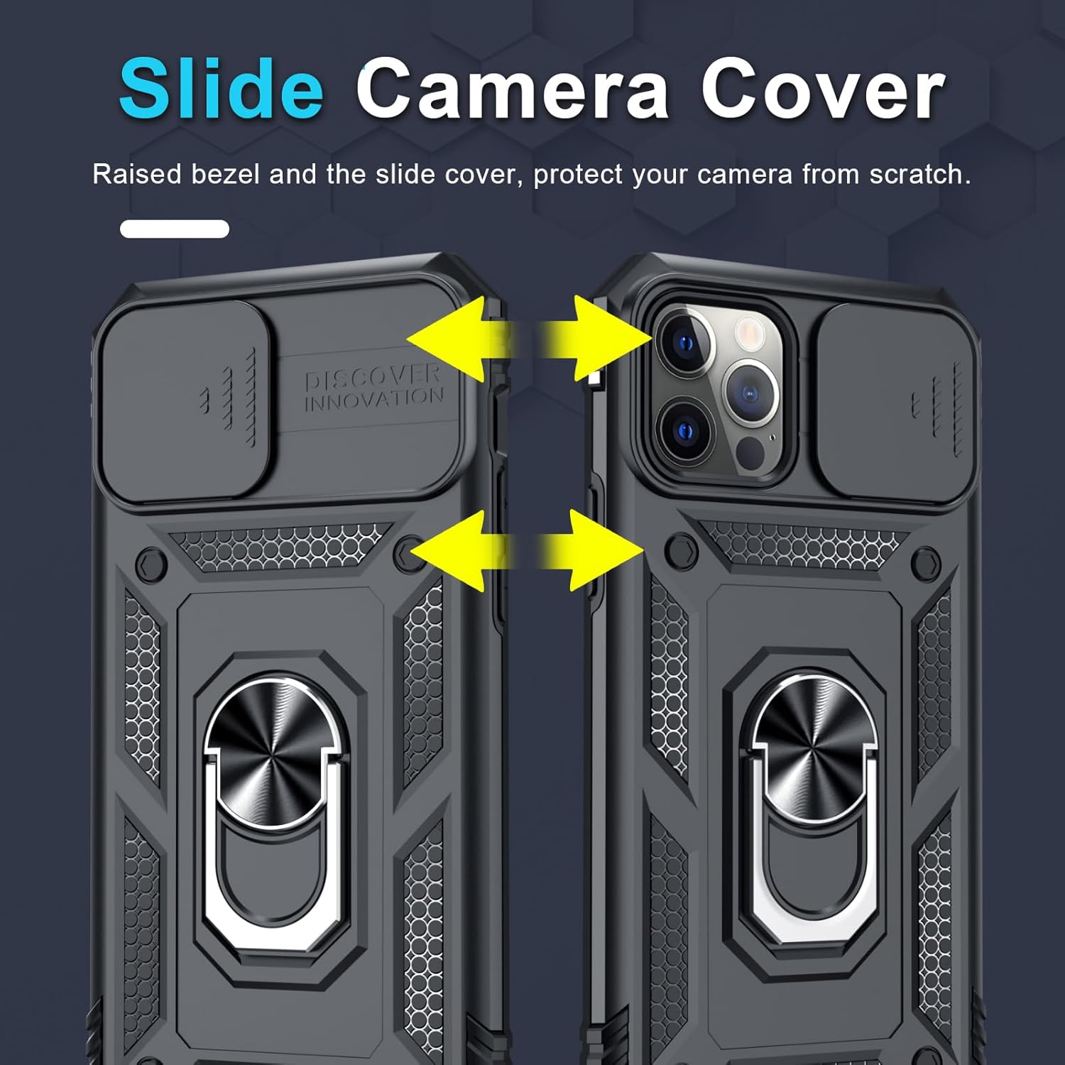 - Unique Camera Window:The sliding lens cover and raised bezel protect your phone camera from scratches.It can slide smoothly left and right,perfect to hide the camera.Besides,the sliding cover is slightly locked on both sides and can not be slid at will