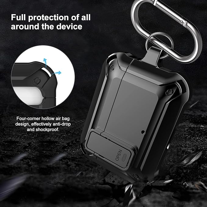 Compatible with JBL Vibe 200TWS/JBL Vibe Beam Case Cover Lock Clip with Cleaner Kit,Cool Protective Cover Men Women with Carabiner for JBL Vibe Beam 2 Charging Case – Black