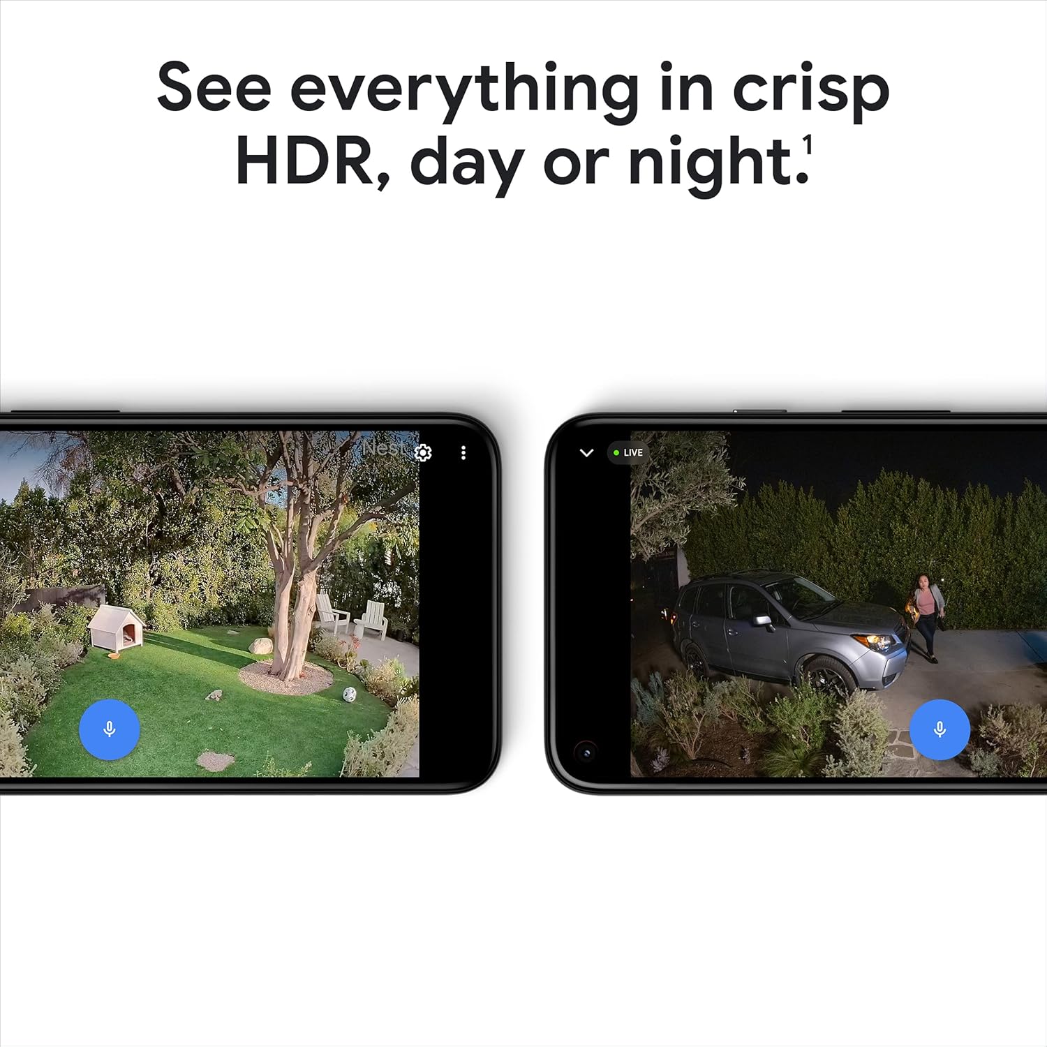 - Easily check in from anywhere 24/7 with 1080p HDR video[1] with night vision; see what you missed with 3 hours of free event video history[2], or add a Nest Aware Plus subscription for 10 days of 24/7 recording and 60 days of event video history[3]