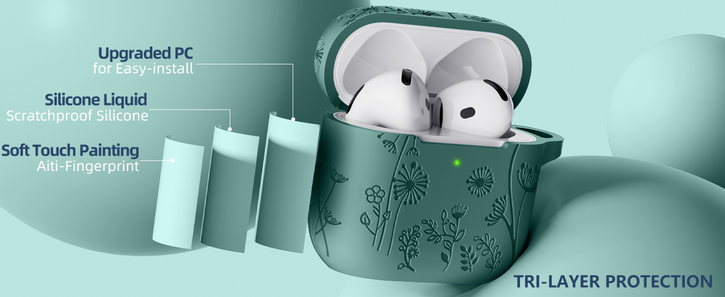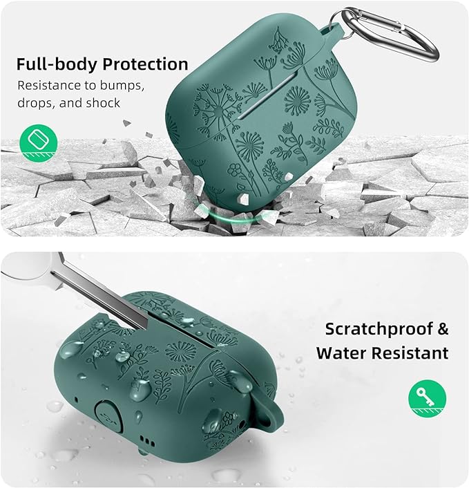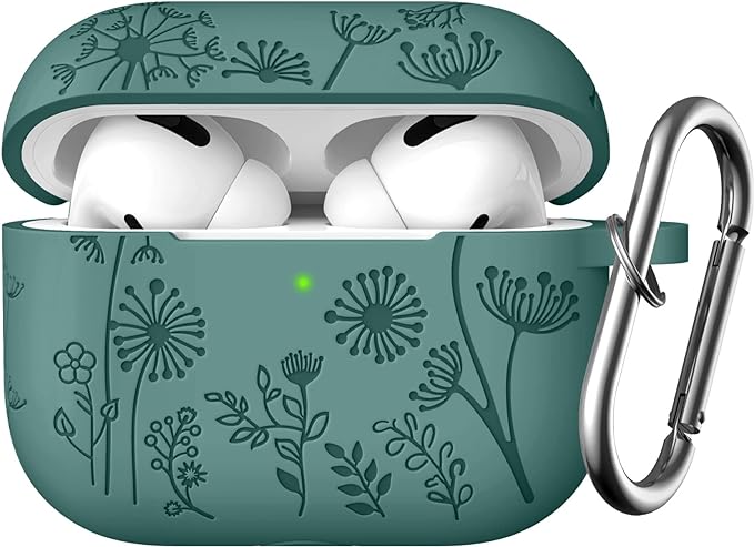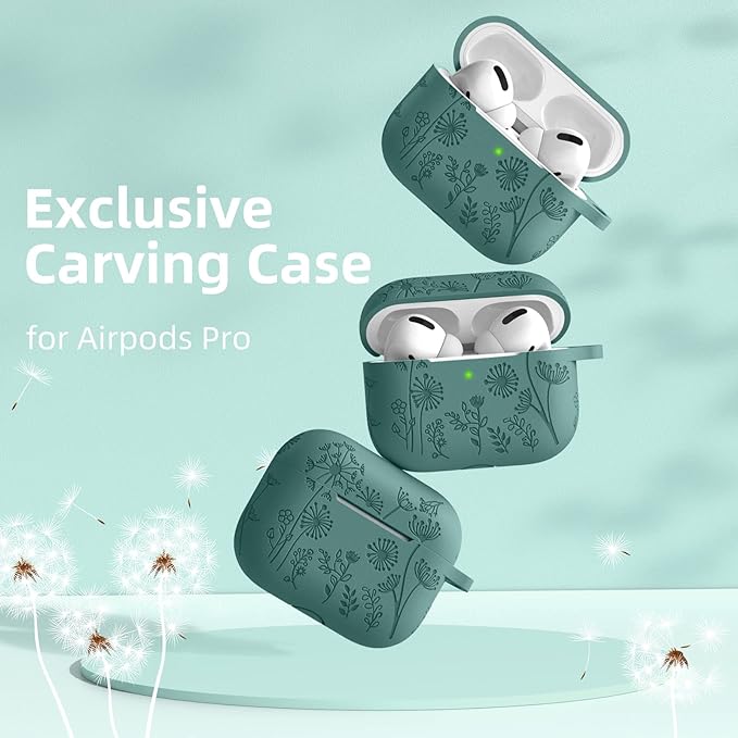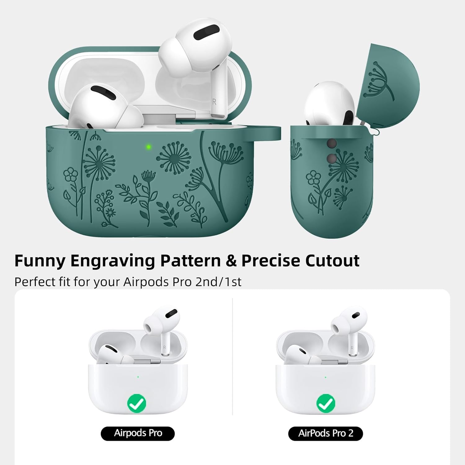 Lerobo Flower Engraved AirPods Pro Case with Keychain – Pine Green
