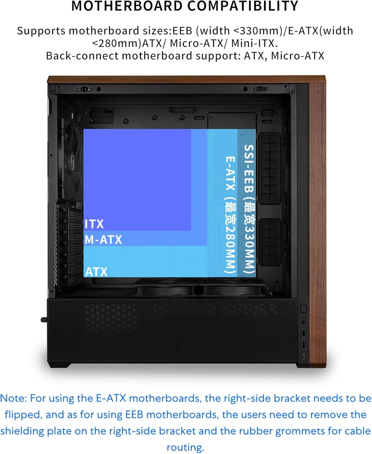 Lian Li LANCOOL 217 Genuine Walnut Wood Computer Case, Mid-Tower ATX PC Case with 5 Pre-Installed PWM Fans 2x170mm, 2x120mm & 1x140mm, Flexible PSU & Cable Installation – Black (LAN217X)