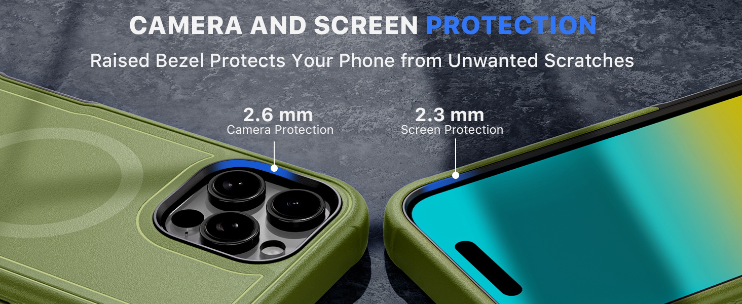 • Extra Layer of Protection:The 2.6mm Camera and 2.3mm Screen Raised Edges, Avoid Collision. Complete with a Tempered Glass Screen Protector, It Effectively Protects the Screen from Fingerprints, Smudges and Scratches.The Texturized Bumper Grip Prevents the Phone from Slipping out of Your Hands, Reducing the Risk of Accidental Drops and Slips.