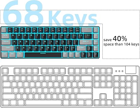 - Mini portable 60% compact layout: MK-BOX is a 68 keys mechanical keyboard have cute small size, but with separate arrow keys and F1-F12, Fn function keys you need, can use it for gaming or work while saving space.