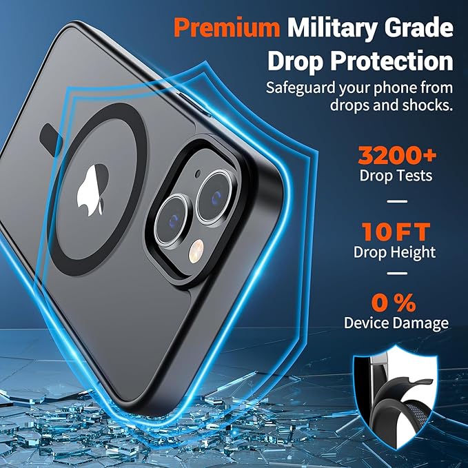 SUPFINE Magnetic for iPhone 15 Plus Case & iPhone 14 Plus Case(Compatible with MagSafe)(Military Grade Drop Protection) Translucent Shockproof Phone Cover,Black