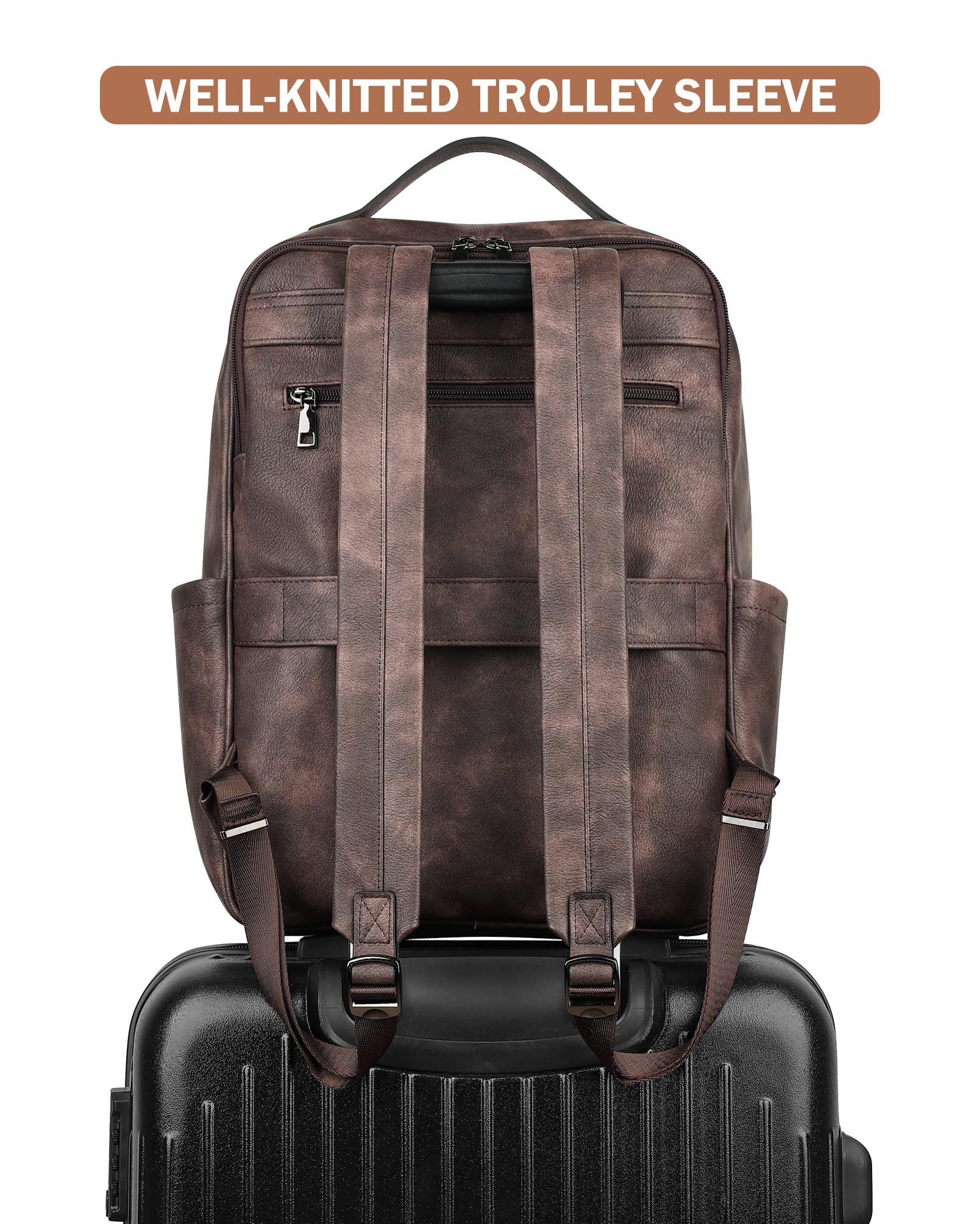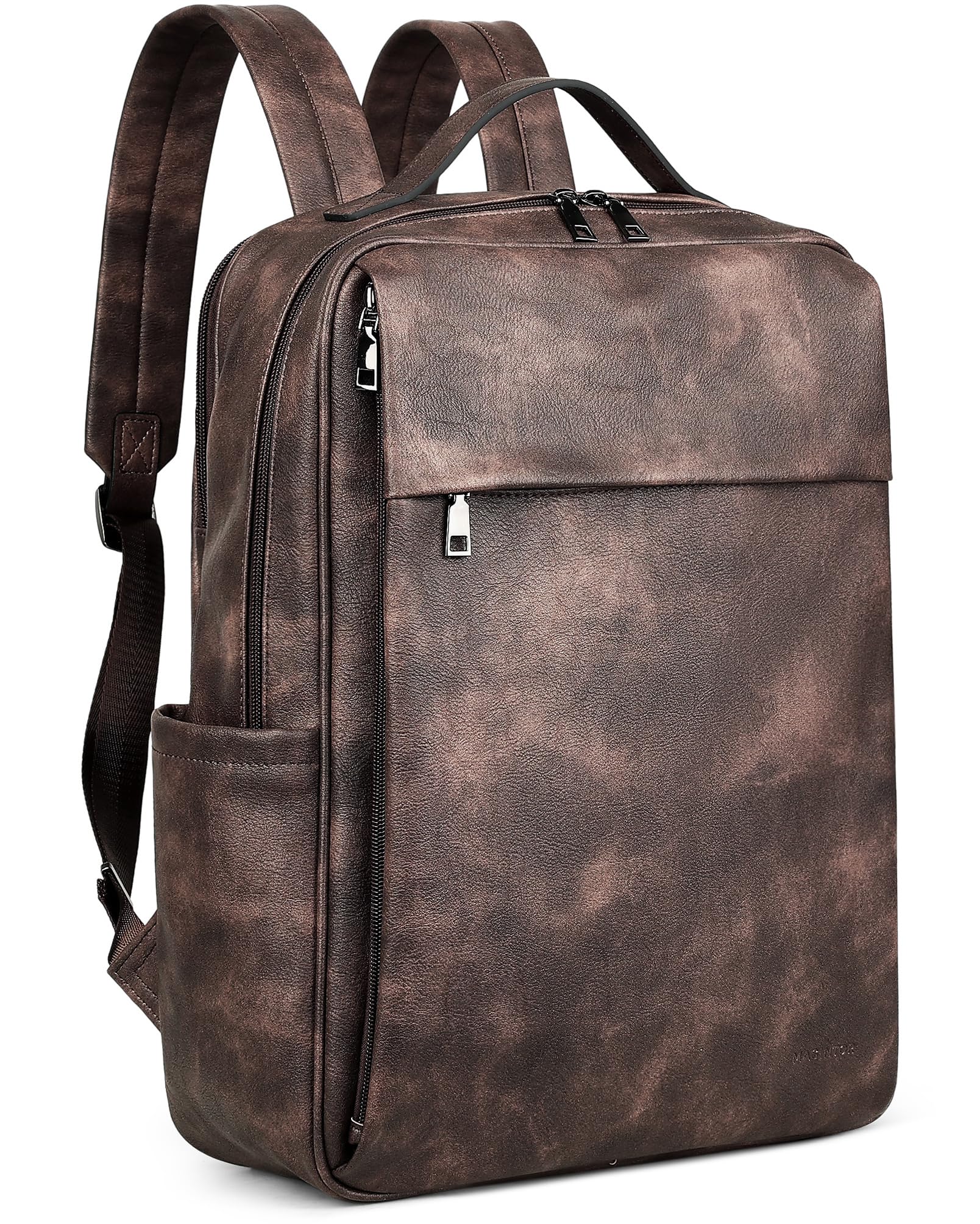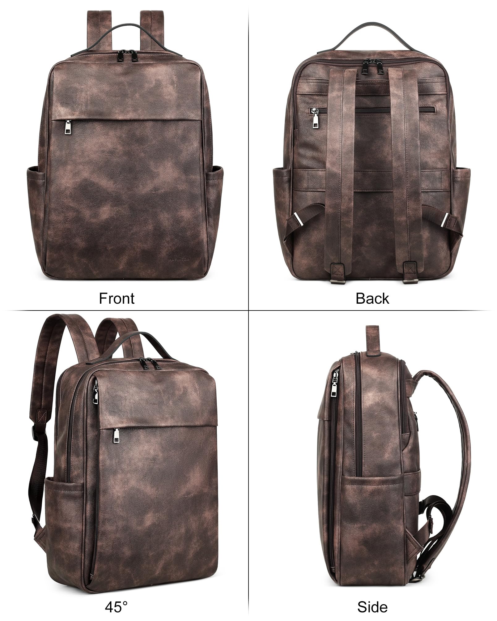 - High-Quality Vegan Leather: Made from durable, waterproof vegan leather, this heavy-duty laptop backpack combines quality with style, making it suitable for any weather.