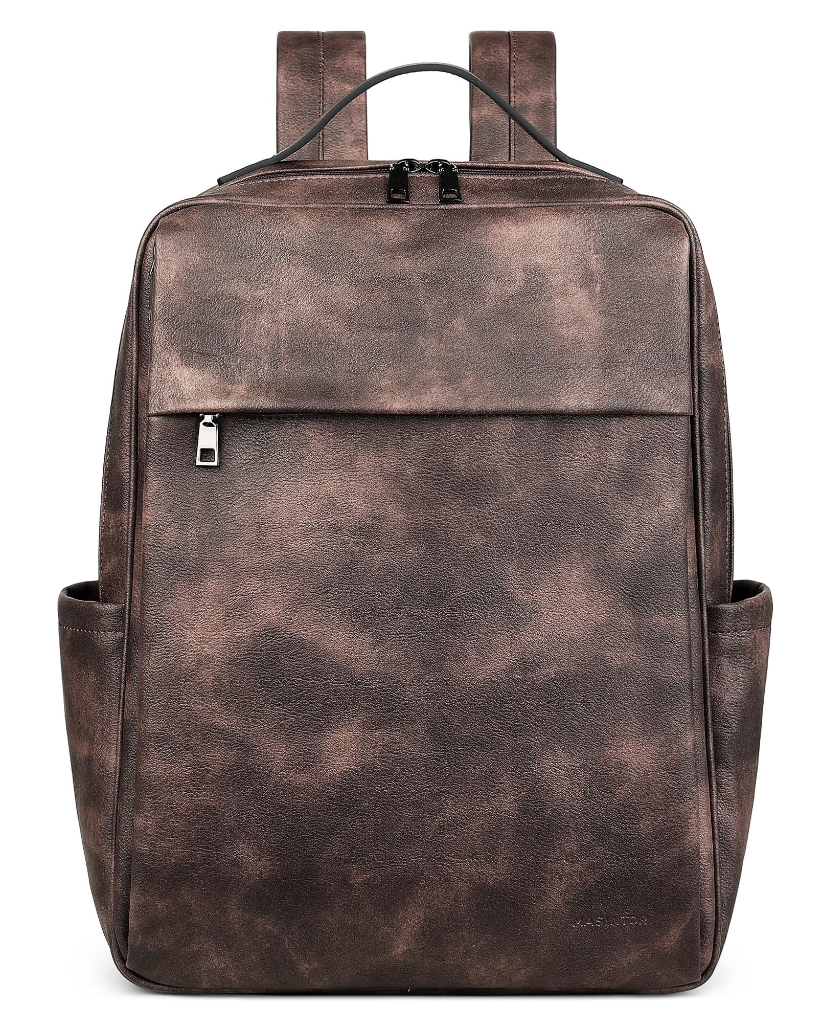 MASINTOR 15.6 inch PU Leather Laptop Backpack Purse for Women, Large College Casual Backpack Travel Bag Retro Coffee