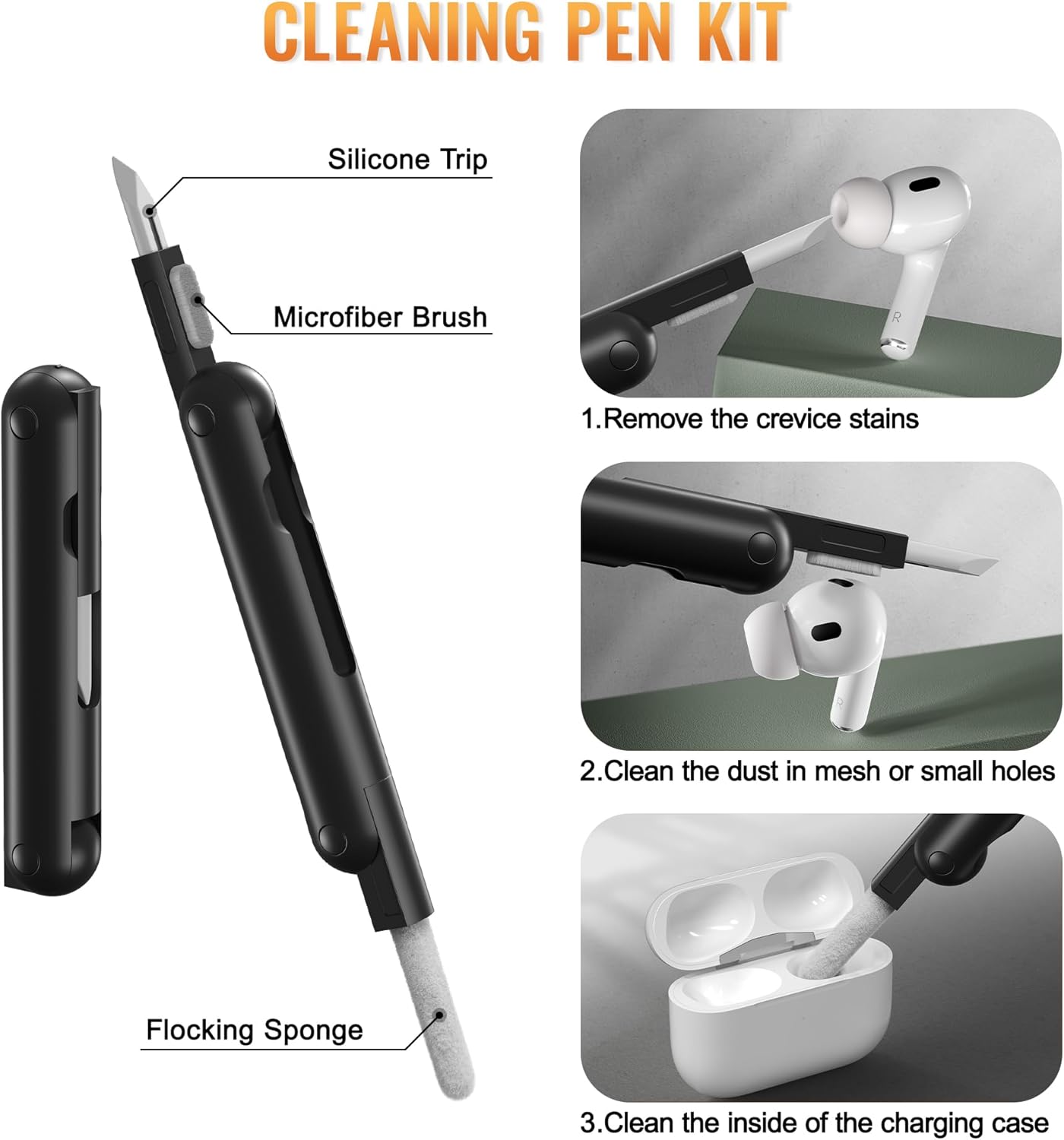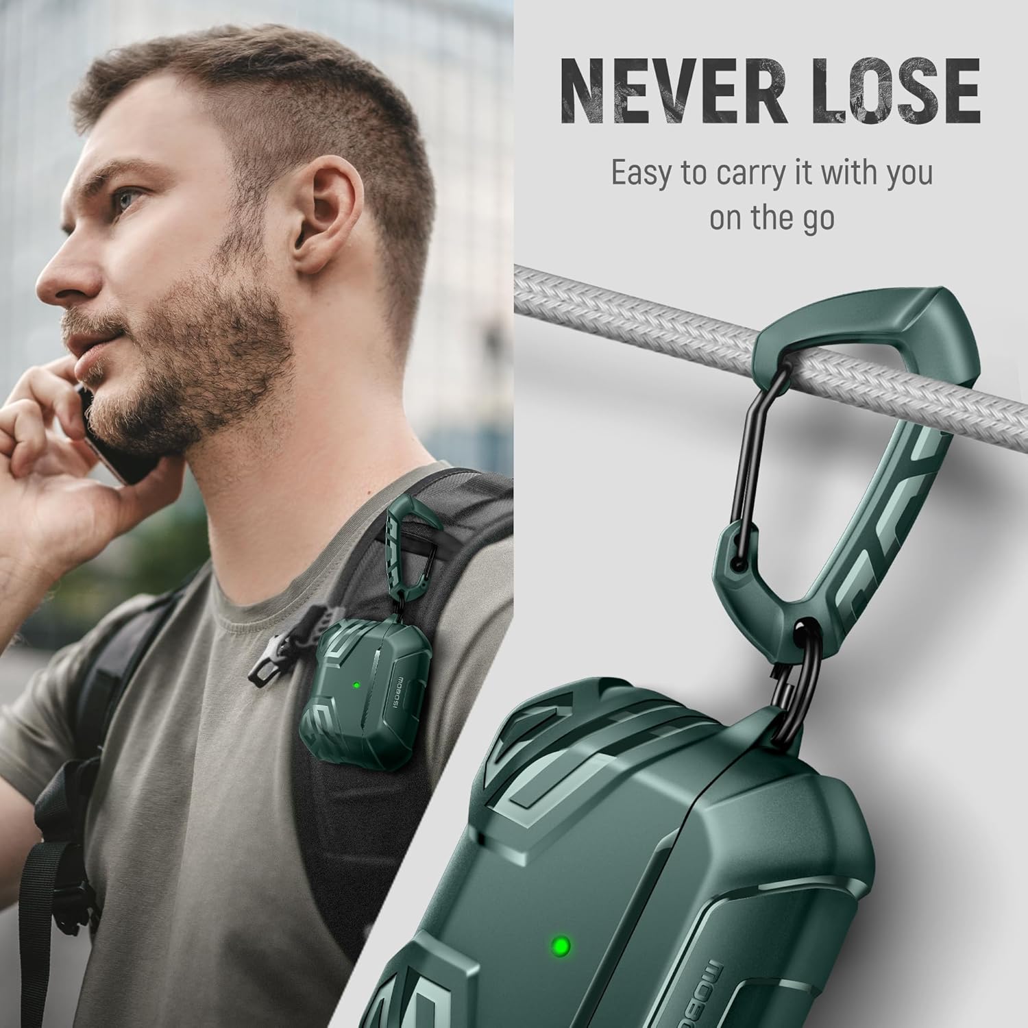 - [Multifunctional 3-in-1 Case]: MOBOSI for Airpods pro Case with Cleaning Kit & Portable Keychain/Carabiner & Secure Lock Clip, Durable, Covenient, Safe, Easy-to-Carry, meet all your needs.