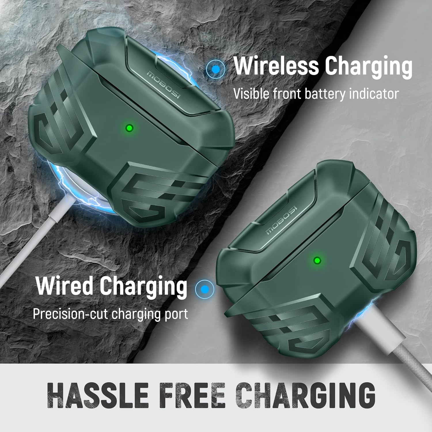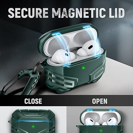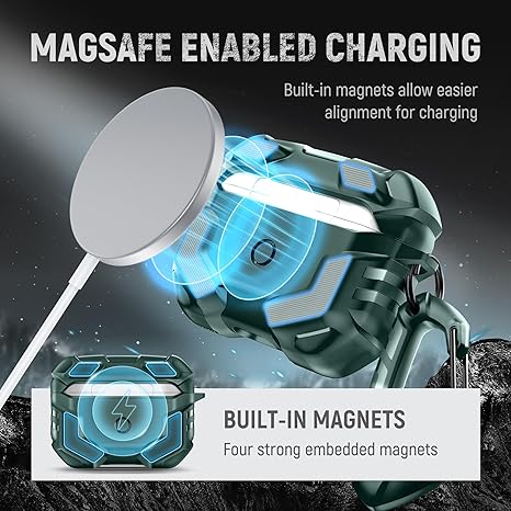 - [Compatibility] Compatible with AirPods Pro Case 2nd/1st Generation (2023/2022/2019)(USB-C/Lightning Cable).Compatible with Magsafe. Qi-Certified wireless charging compatible without removing the protective case; also supports wired charging with quick access to lightning and USB-C charging port. LED Light visible. NOT compatible with Magsafe charging.