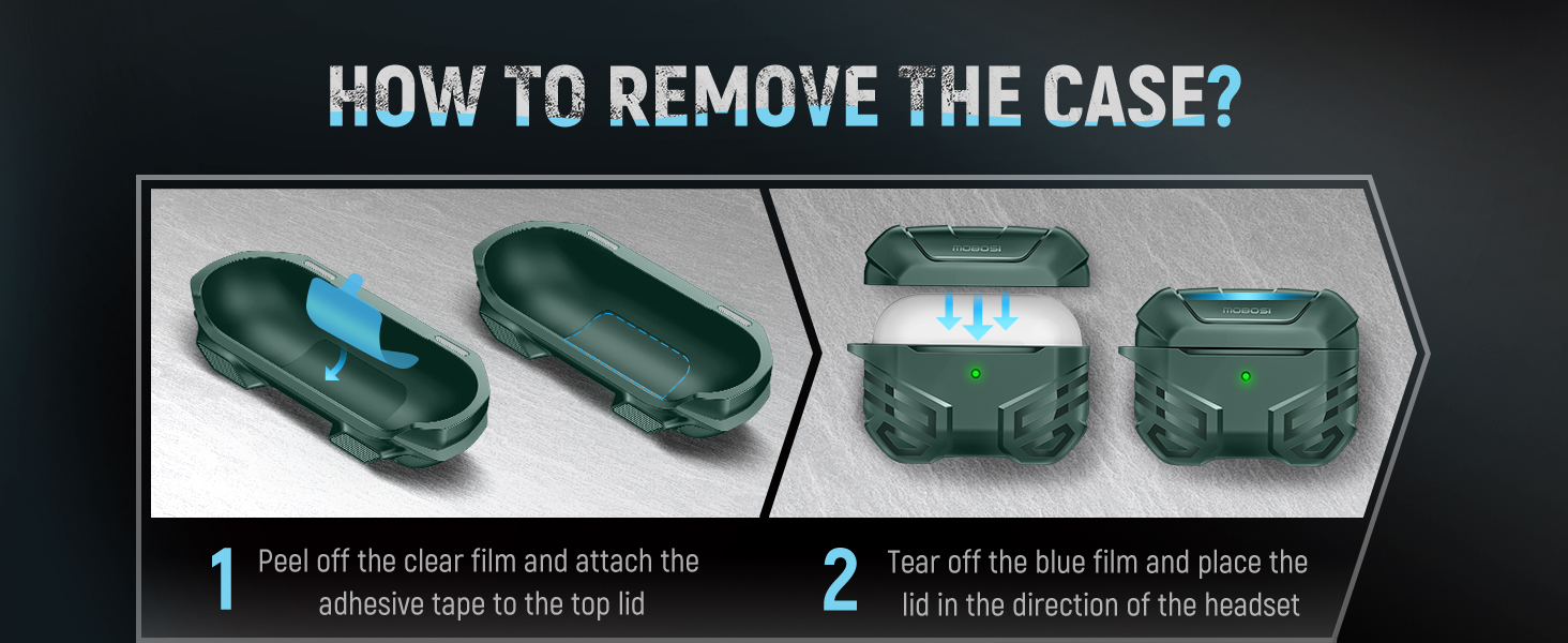 - [What You Get]: 1*Case for AirPods 2nd/1st Generation, 1*Carabiner, 1*Cleaner Kit, 1*Removal Tool,1*Manual. NOTE: ① Please tear the pre-installed adhesive tape for additional lid support. ②If there are any issues such as missing parts, product quality problems, or installation problems, please let us know.