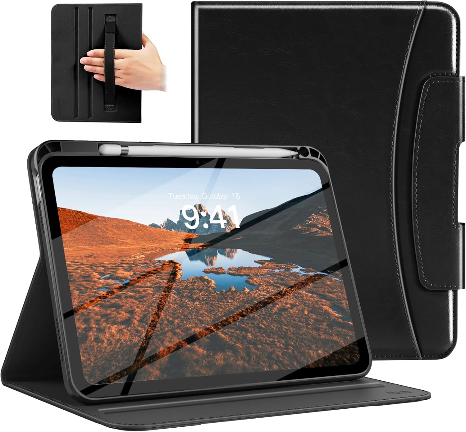- Built-in Hand Strap & Front Pocket: Interior hand strap allowing easy and firm control of the iPad 11 inch by one hand. The front pocket of this iPad 11th generation case can be used to manage documents, bank cards, business cards, notes, cash or bills