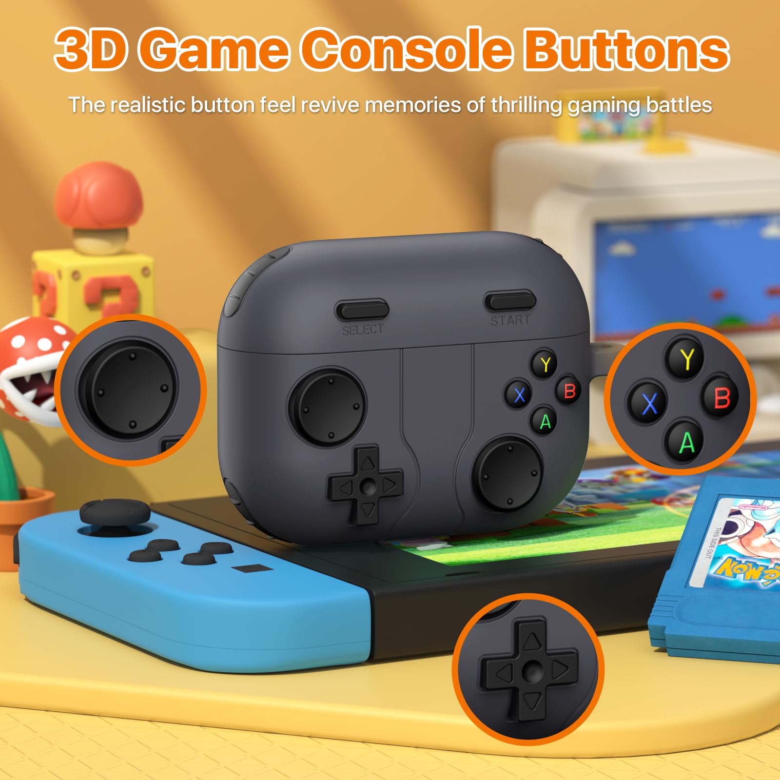 - Classic Game Console Design: This Airpods Pro 3rd Generation casemakes your AirPods Pro 3 look like a really cool mini game console with silicone 3D buttons. Feel the charm of vintage nostalgia combined with new technology. The Airpods Pro3 game case gives your AirPods Pro 3 a unique identity, fully showcasing your personality and sense of fun