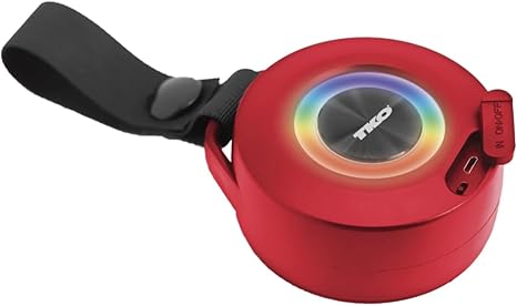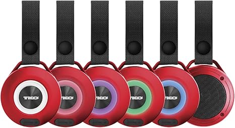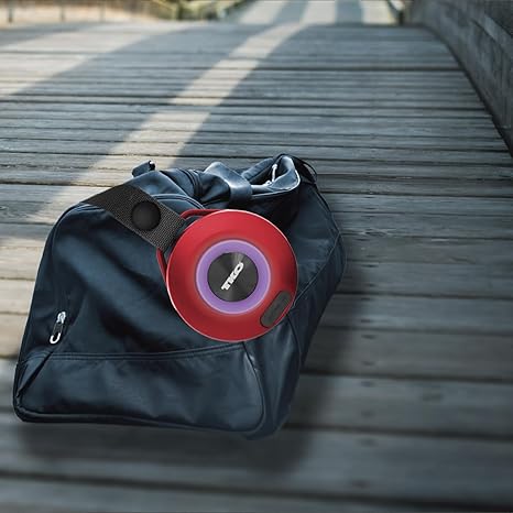 Wireless Speaker IPX4 Water Resistant with Light – TWS Speakers Wireless with Built in Rechargeable Battery – Portable USB Speaker with Hanging Strap (Red)